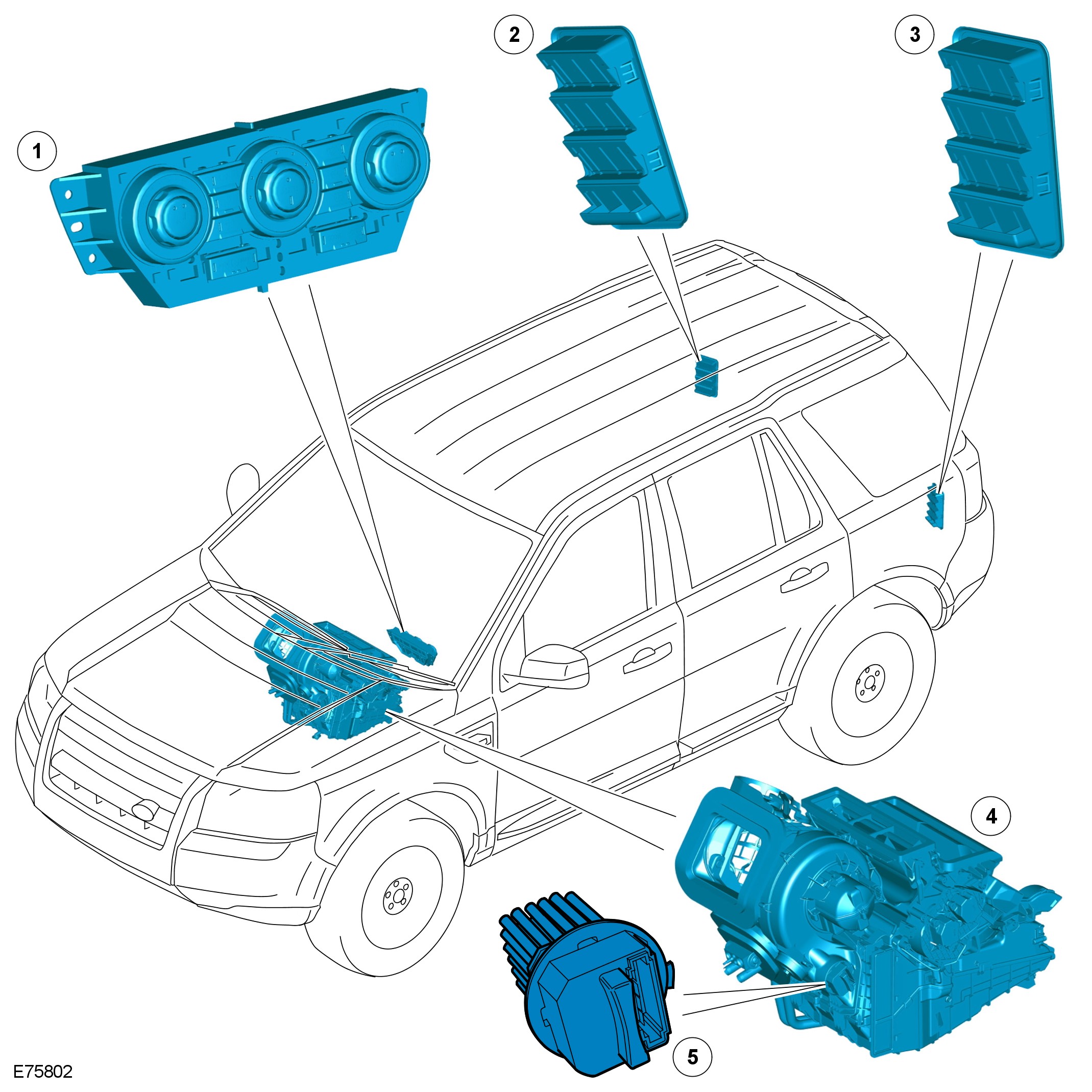 Two levels of heating and ventilation are available. High specification vehicles are fitted with a dual zone automatic system, which can provide different temperature settings for the LH and RH sides of the cabin. The dual zone system may also be fitted with a pollution sensor to control the quality of air in the cabin.