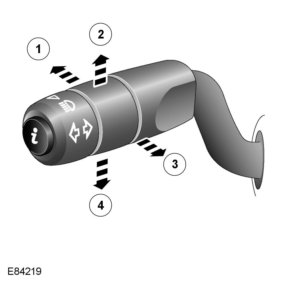The steering column multifunction switch is located on the left hand side of the steering column and controls the following functions: