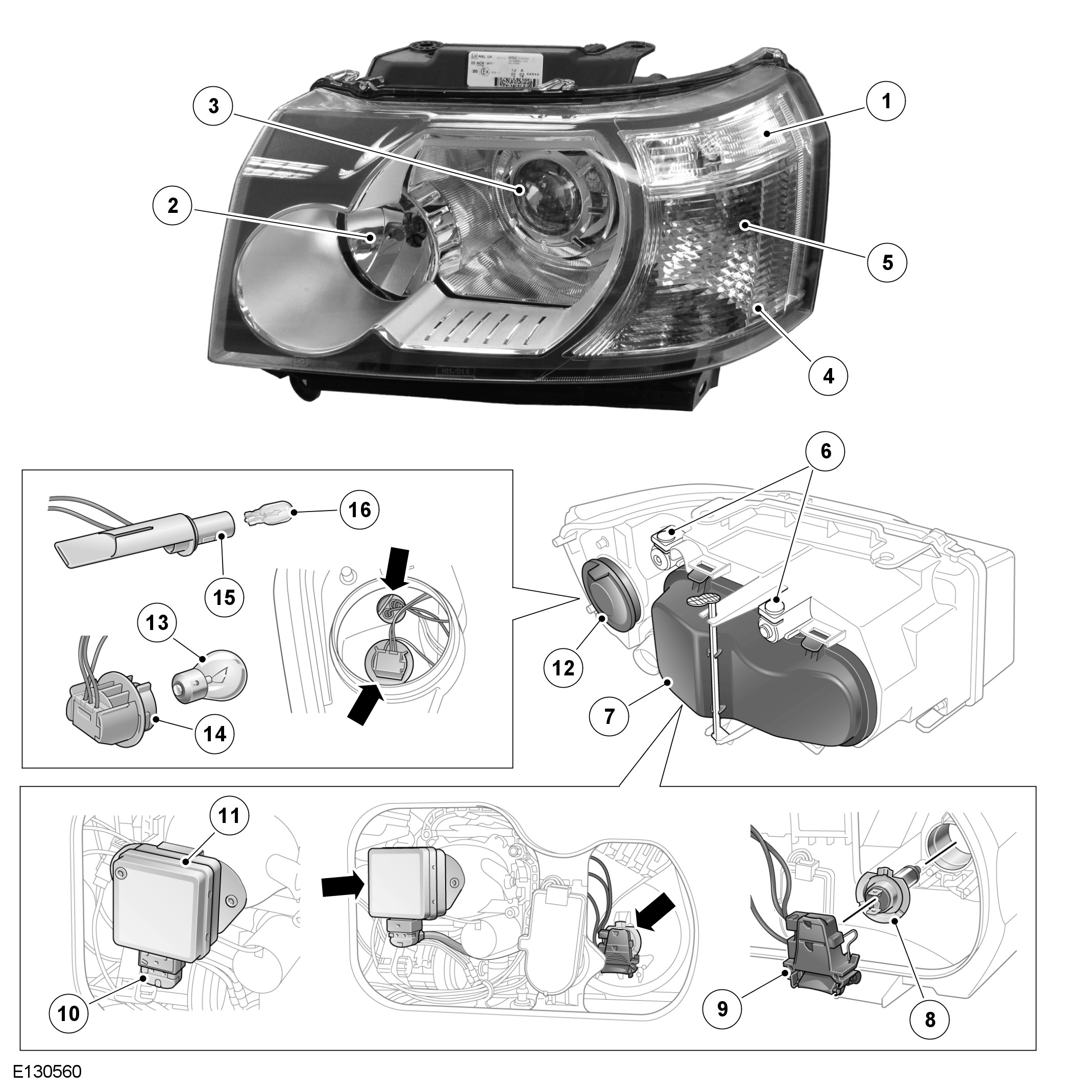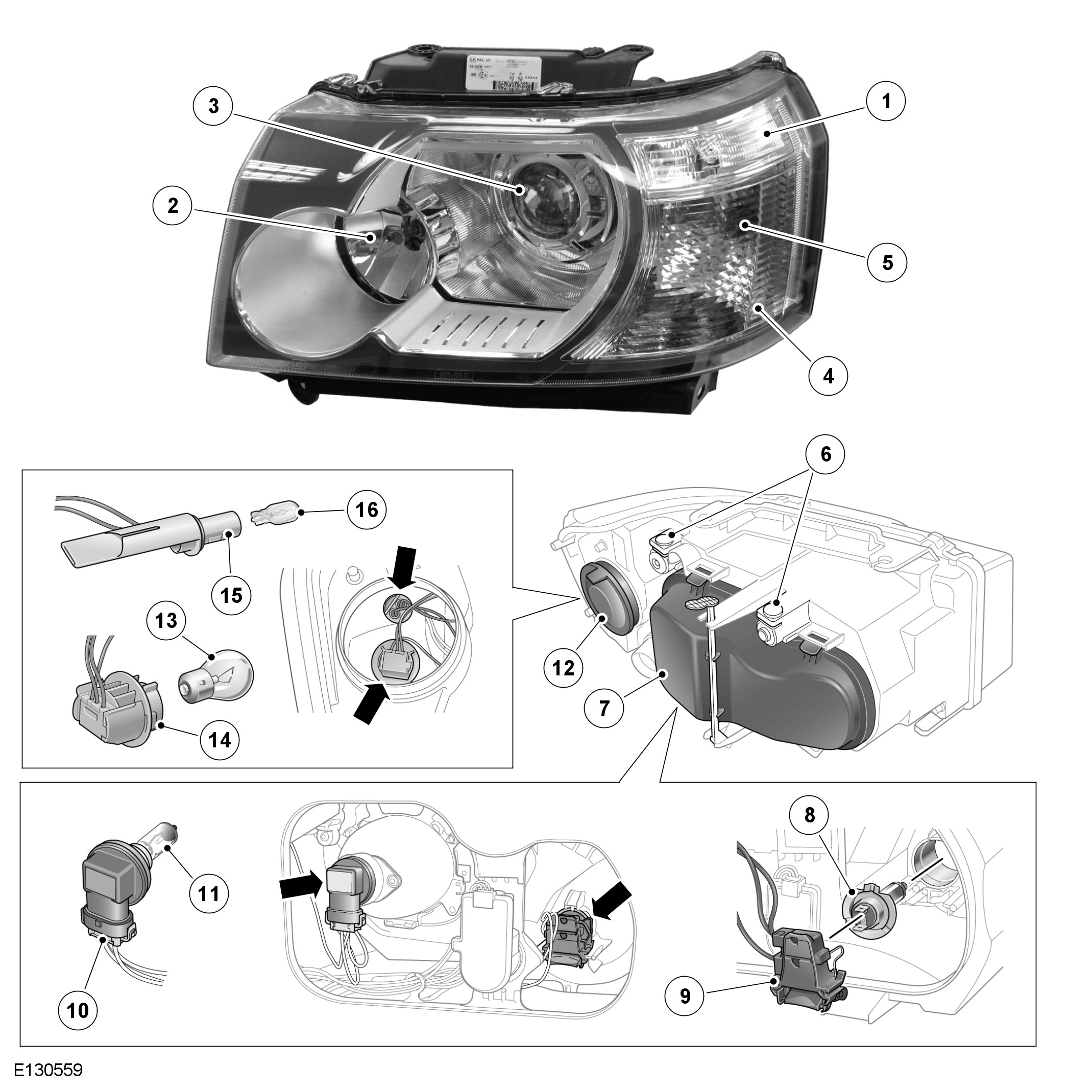 The reflector provides the mounting for the xenon bulb which is an integral part of the igniter. The igniter locates in an aperture at the rear of the reflector and is secured with 2 Torx screws to ensure correct alignment in the reflector.