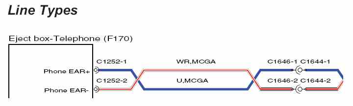 Connectors and header joints are identified by their corresponding connector number with a numbered suffix to indicate the pinout detail of the wire, i.e. C0292-1 identifies connector 292, pin number 1. Wire insulation colours are listed in a table at the end of this section. Where wires have a predominant colour with a secondary colour tracer, the main colour is identified first, i.e. WH-BK - white with a black tracer.