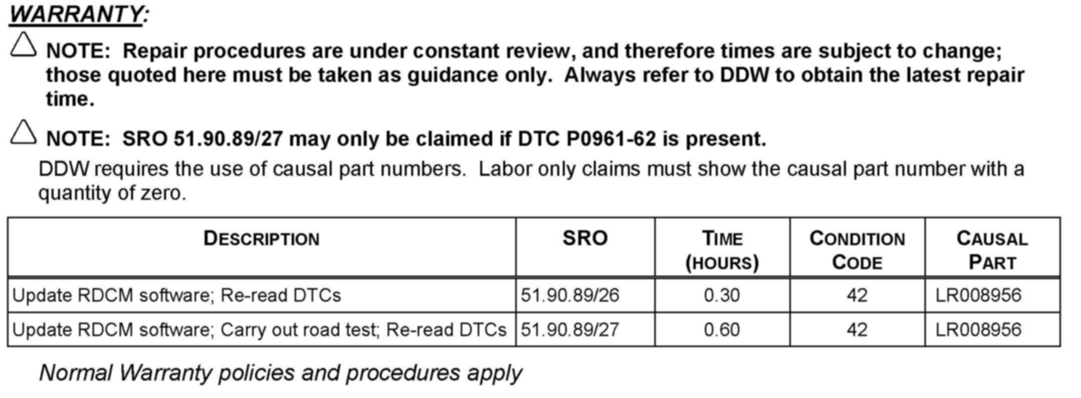 ^ If no signs of short or open circuits are evident, carry out the repair action for P0961-62 listed in Workshop Manual 100-00: General Information, Description and Operation, DTC: Rear Differential Control Module (RDCM).
