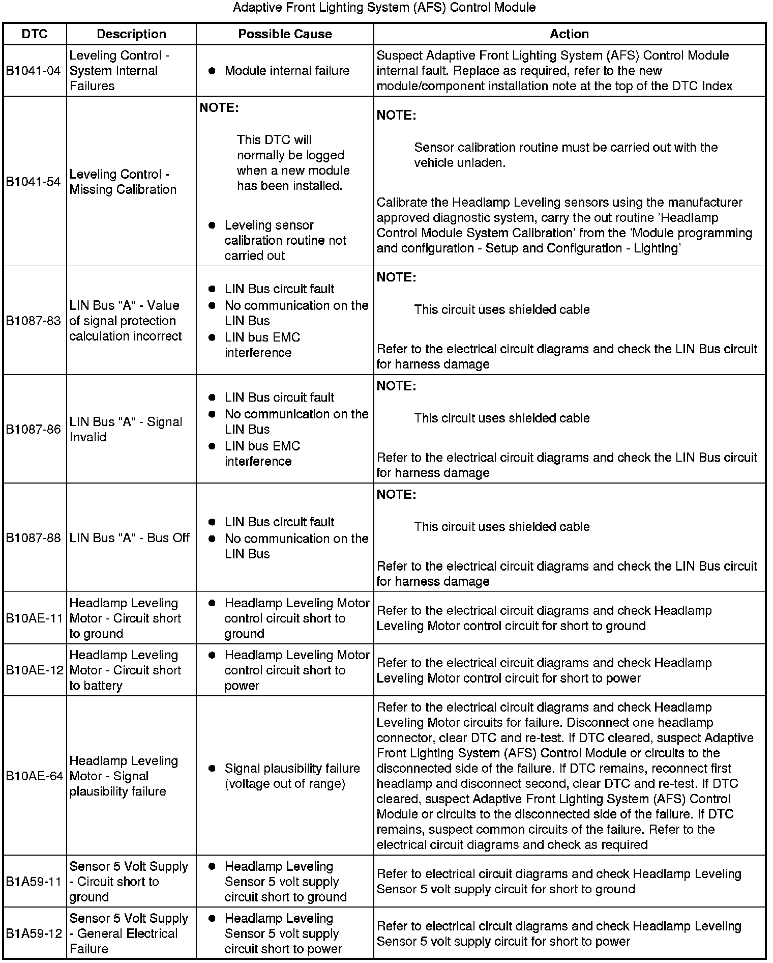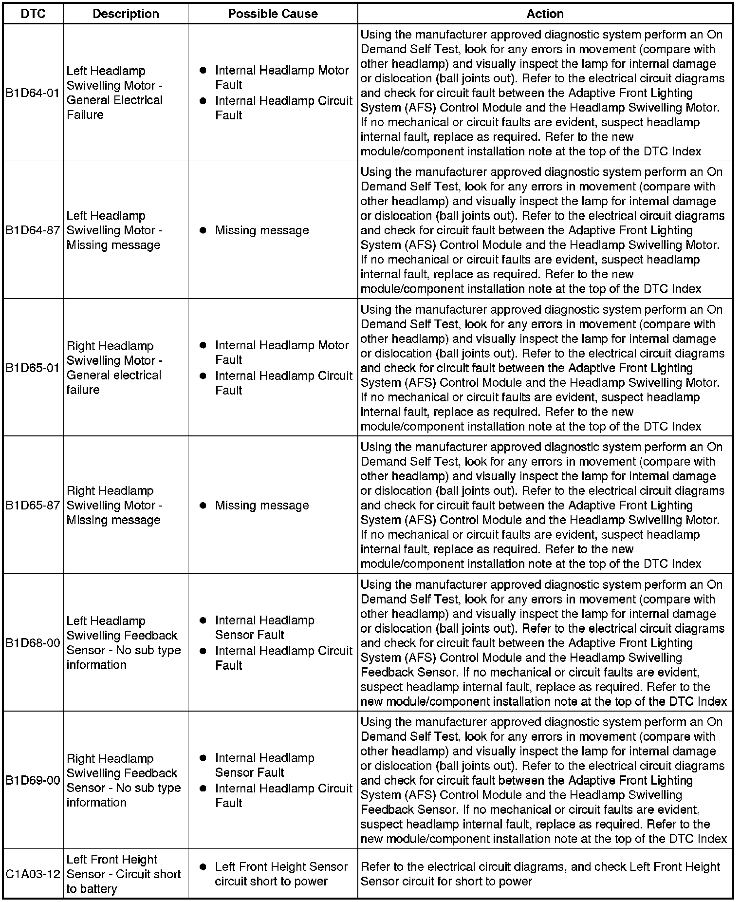 Diagnostic Trouble Code (DTC) Index