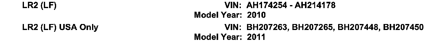 AFFECTED VEHICLE RANGE: