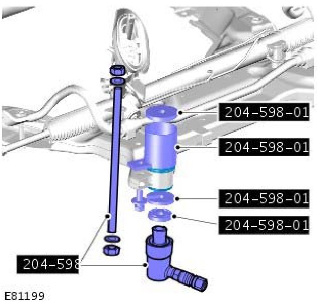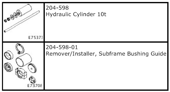 - Special tool 204-598-01/8 is used to start the bushing removal process, and must be removed after the bushing has released, as it will not pass through the sub-frame bushing aperture.