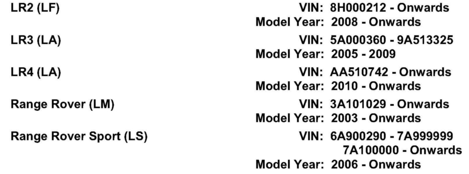 2003 - 2006 model year Range Rover (LM) vehicles must reference the 2007 - 2009 model year Range Rover (LM) Workshop Manual.