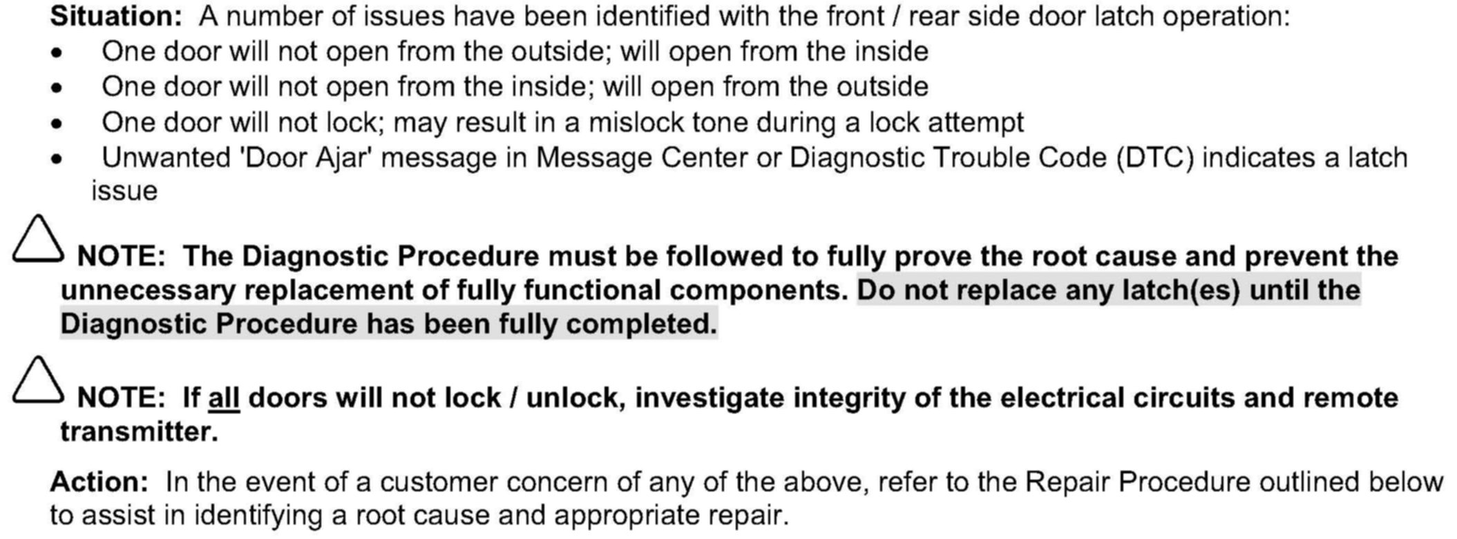 Body - Front And Rear Door Latch Diagnostic Information