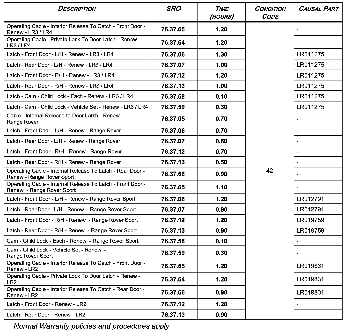 Repair procedures are under constant review, and therefore times are subject to change; those quoted here must be taken as guidance only. Always refer to DDW to obtain the latest repair time.
