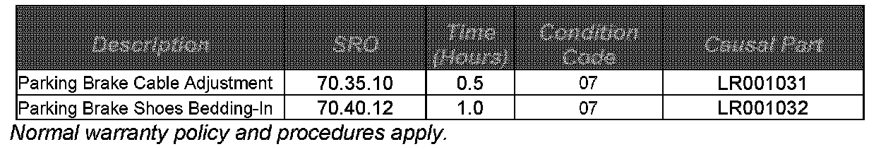 PARKING BRAKE CABLE ADJUSTMENT AND SHOES BEDDING-IN PROCEDURE