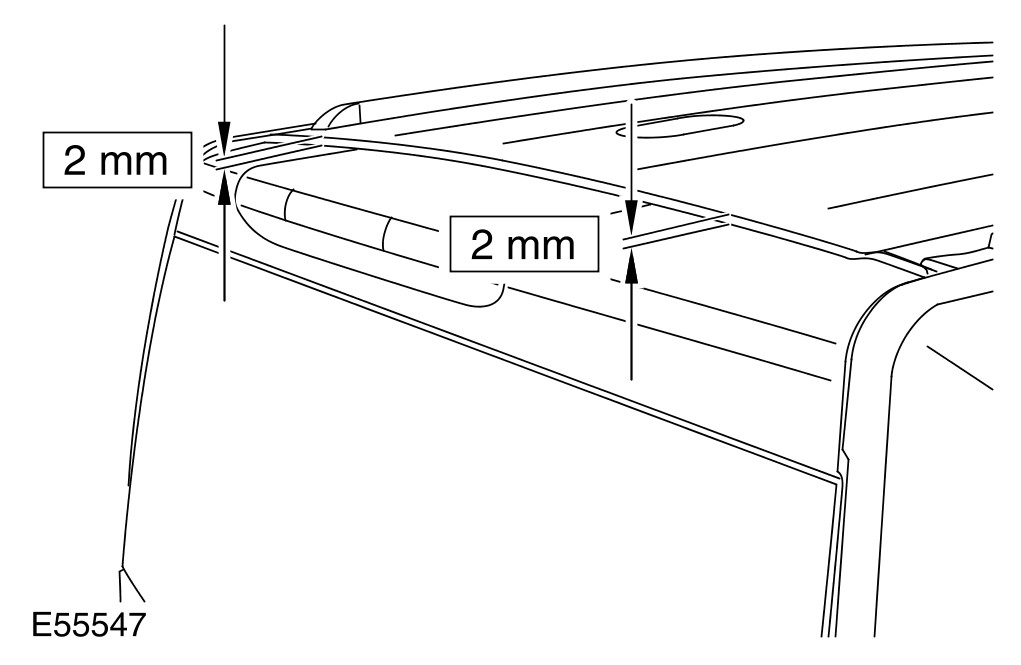 1 With the liftgate closed, check the alignment of the liftgate to roof panel. The liftgate should be central in its aperture. Profile of the liftgate to roof panel should be 2 mm below flush.