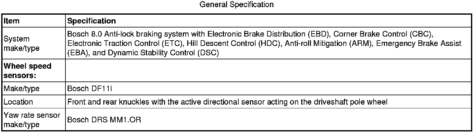 Antilock Brakes / Traction Control Systems: Specifications
