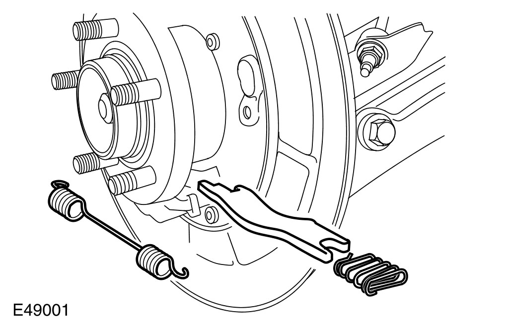 - Disconnect the parking brake cable retaining spring from the brake shoe lever.