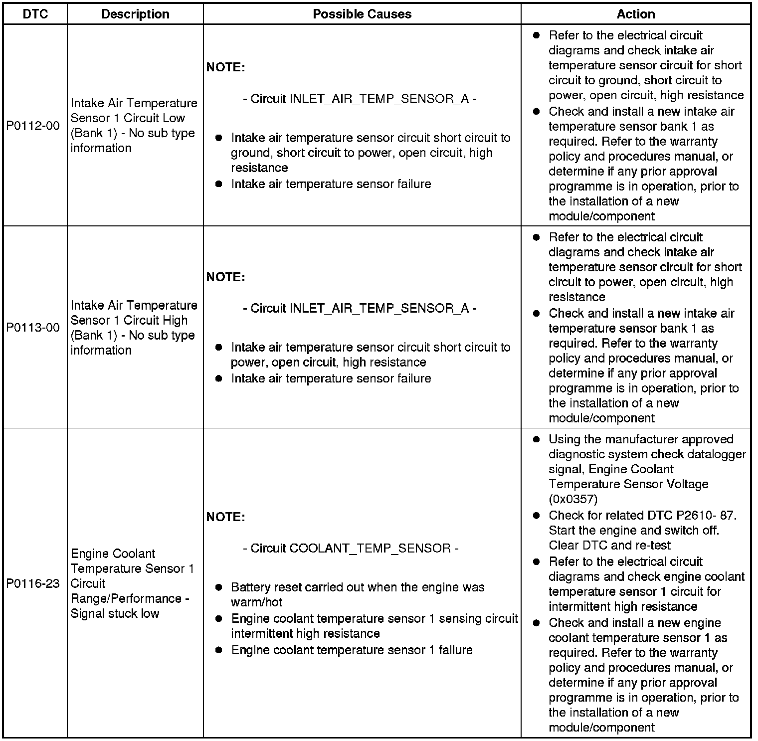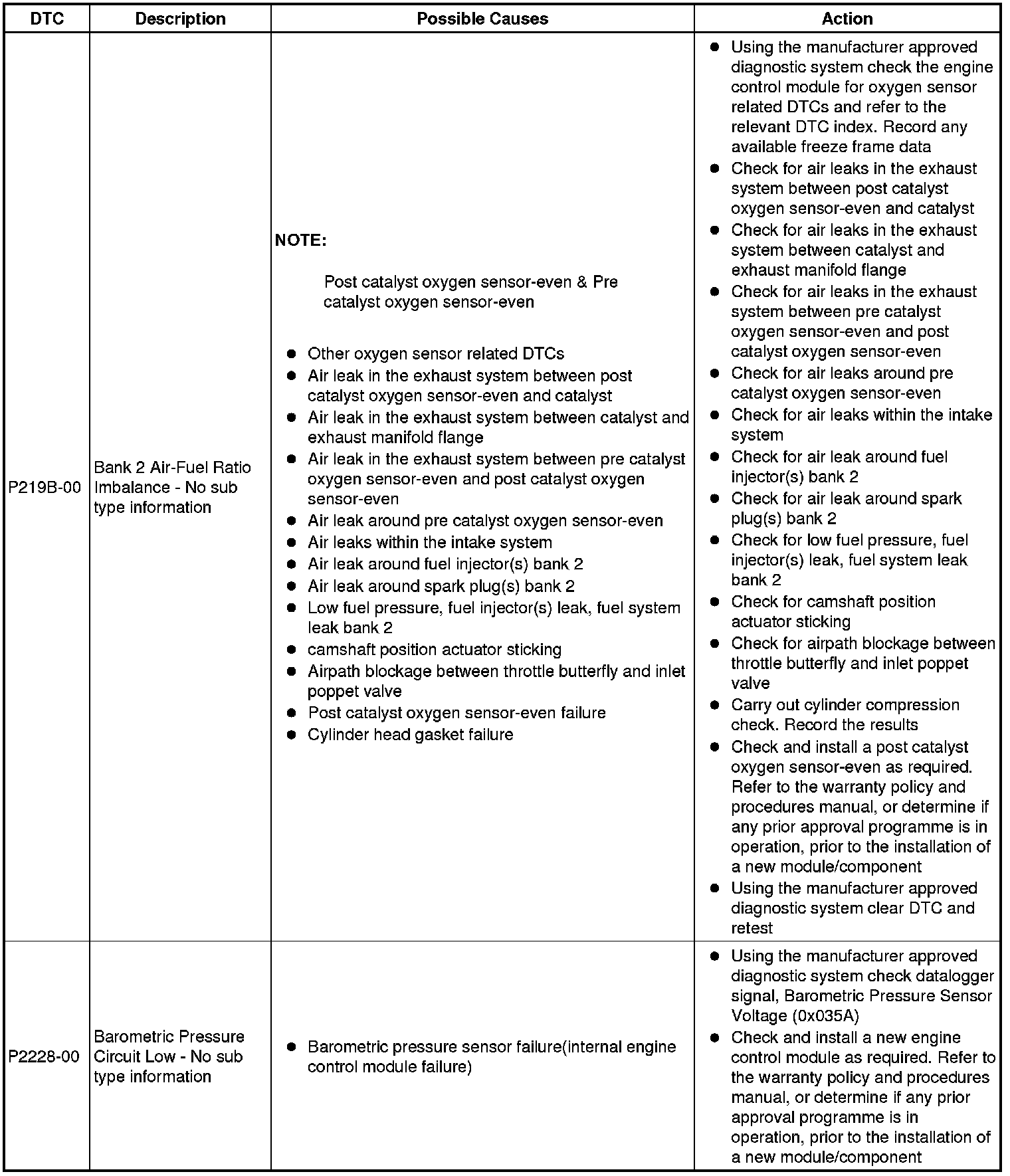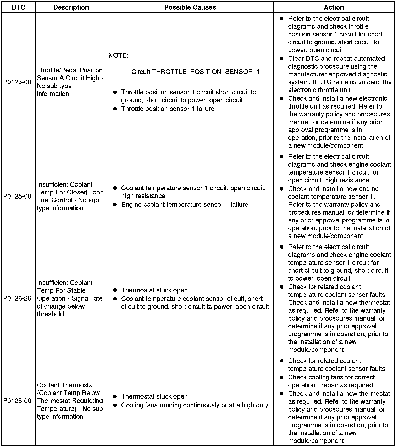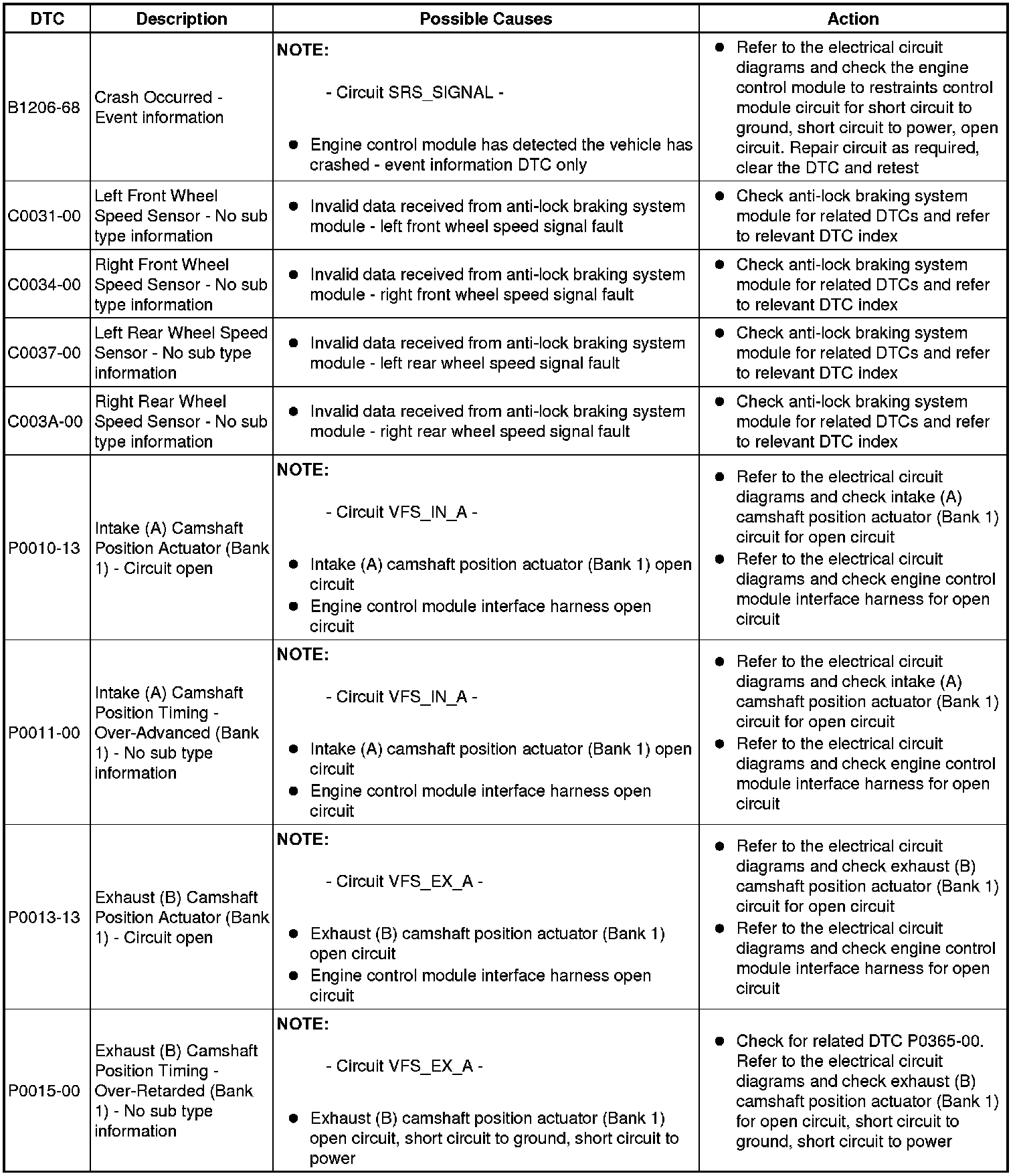 Diagnostic Trouble Code Descriptions