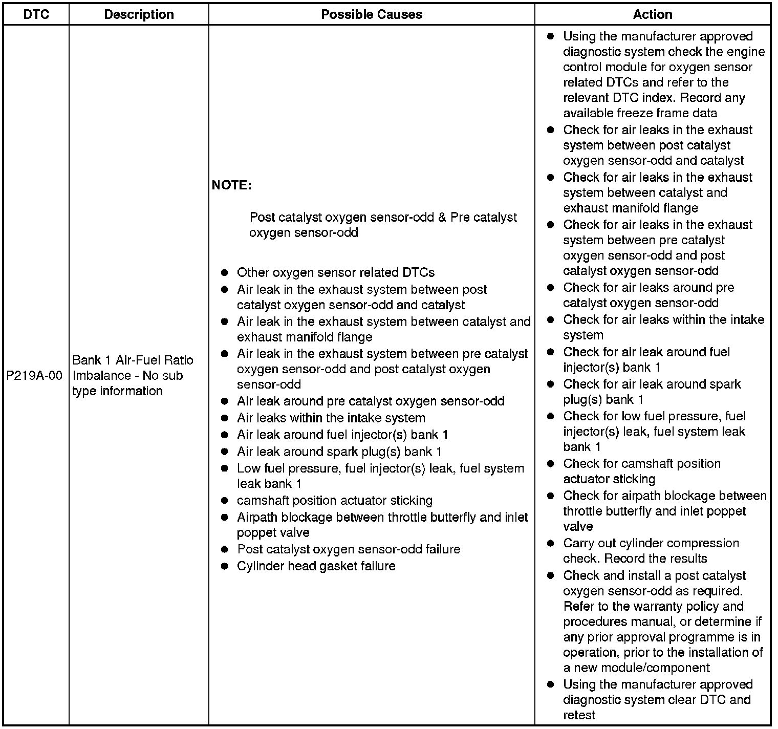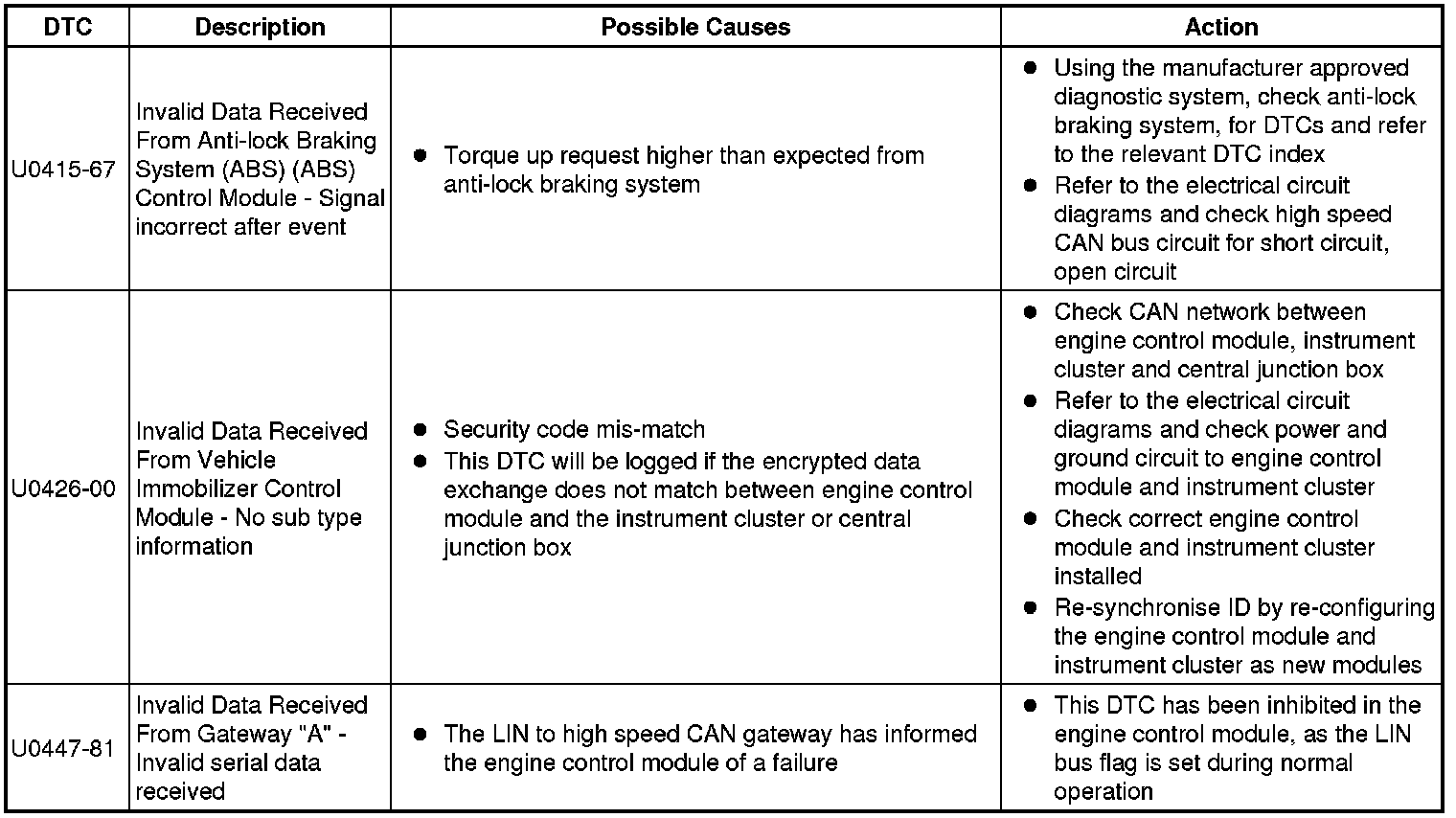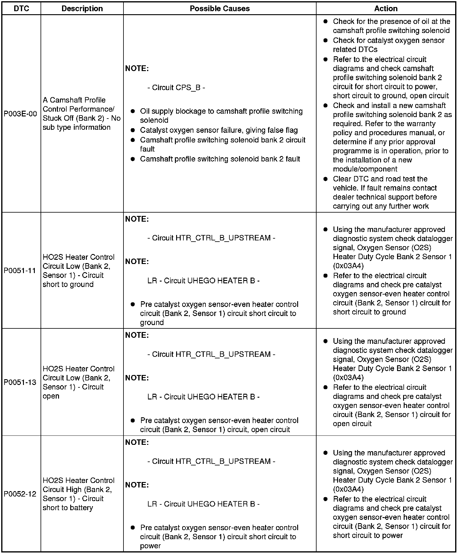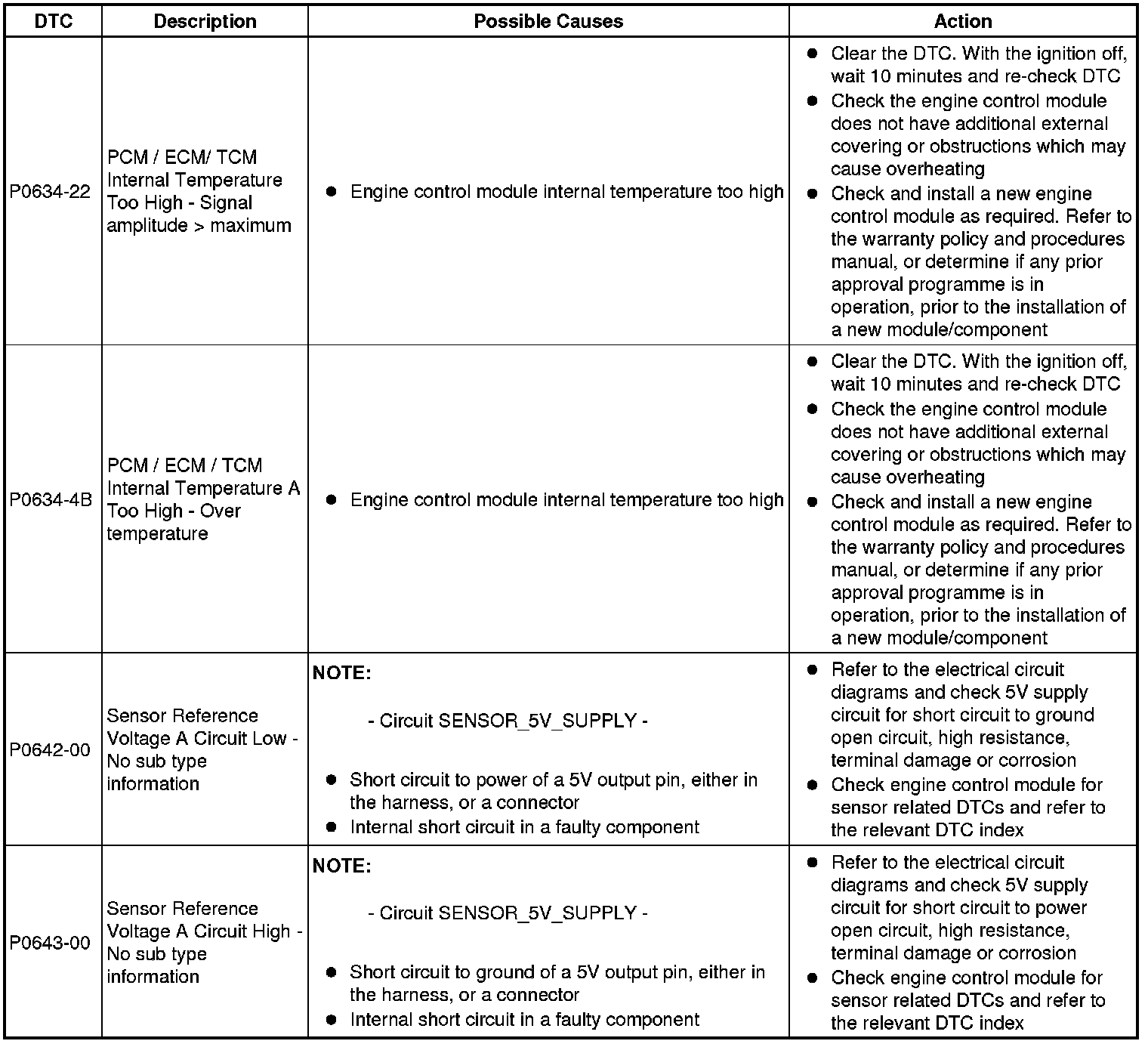 Diagnostic Trouble Code Descriptions