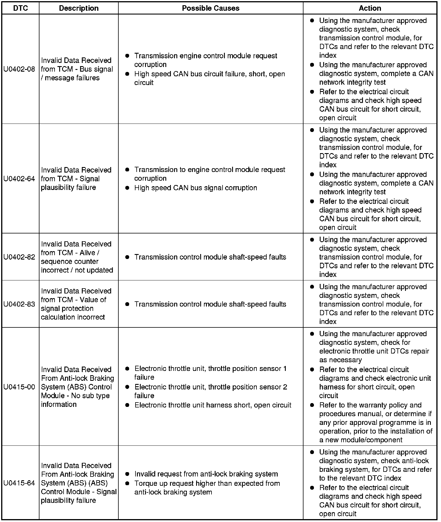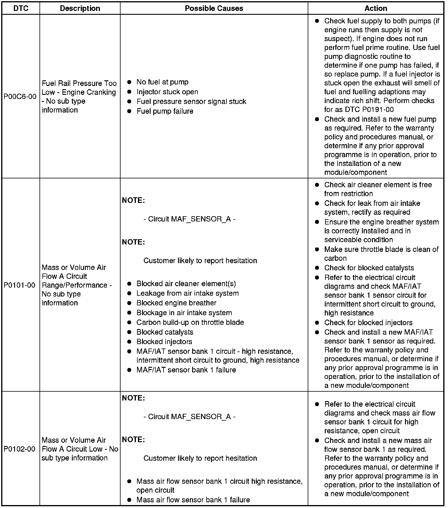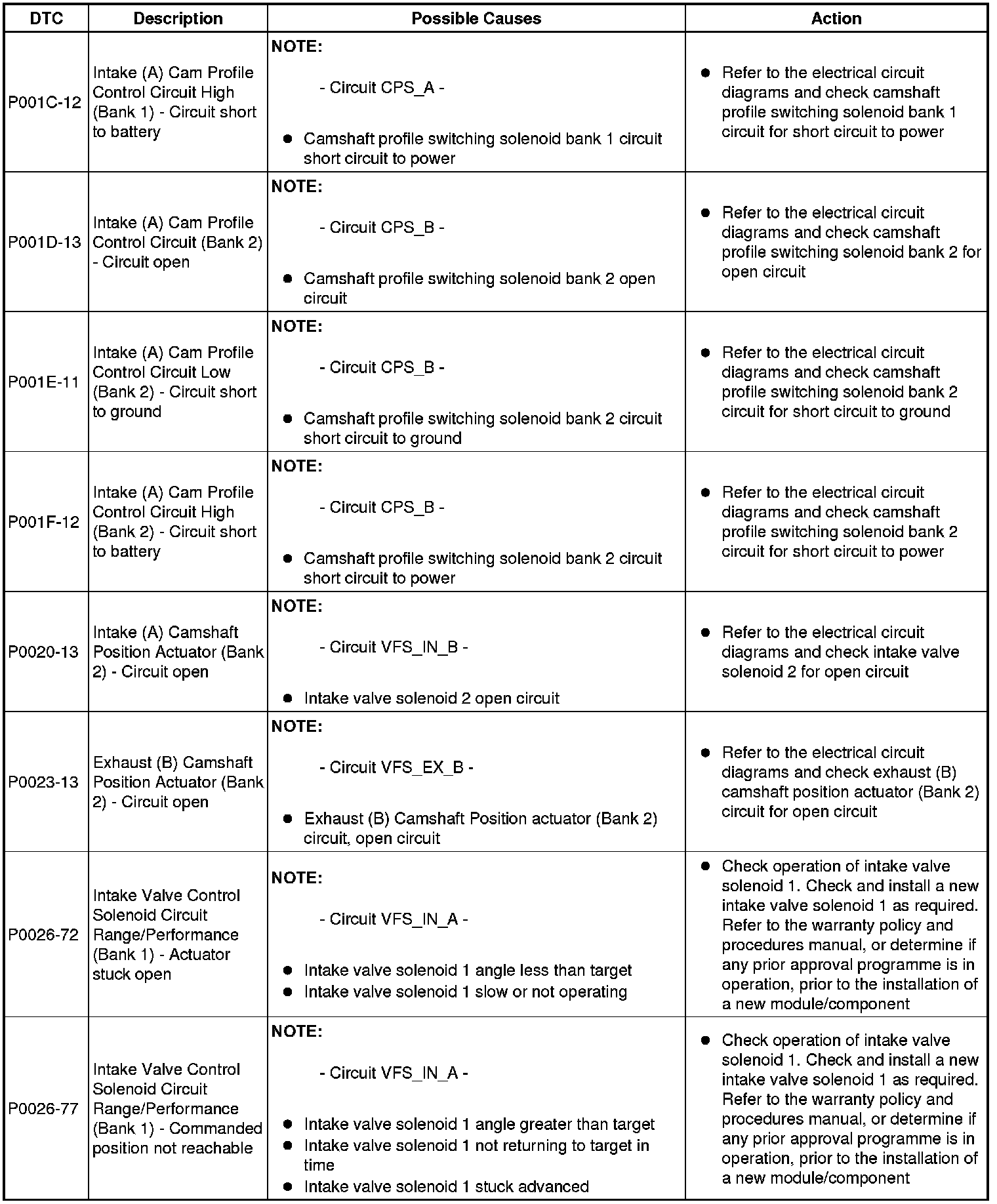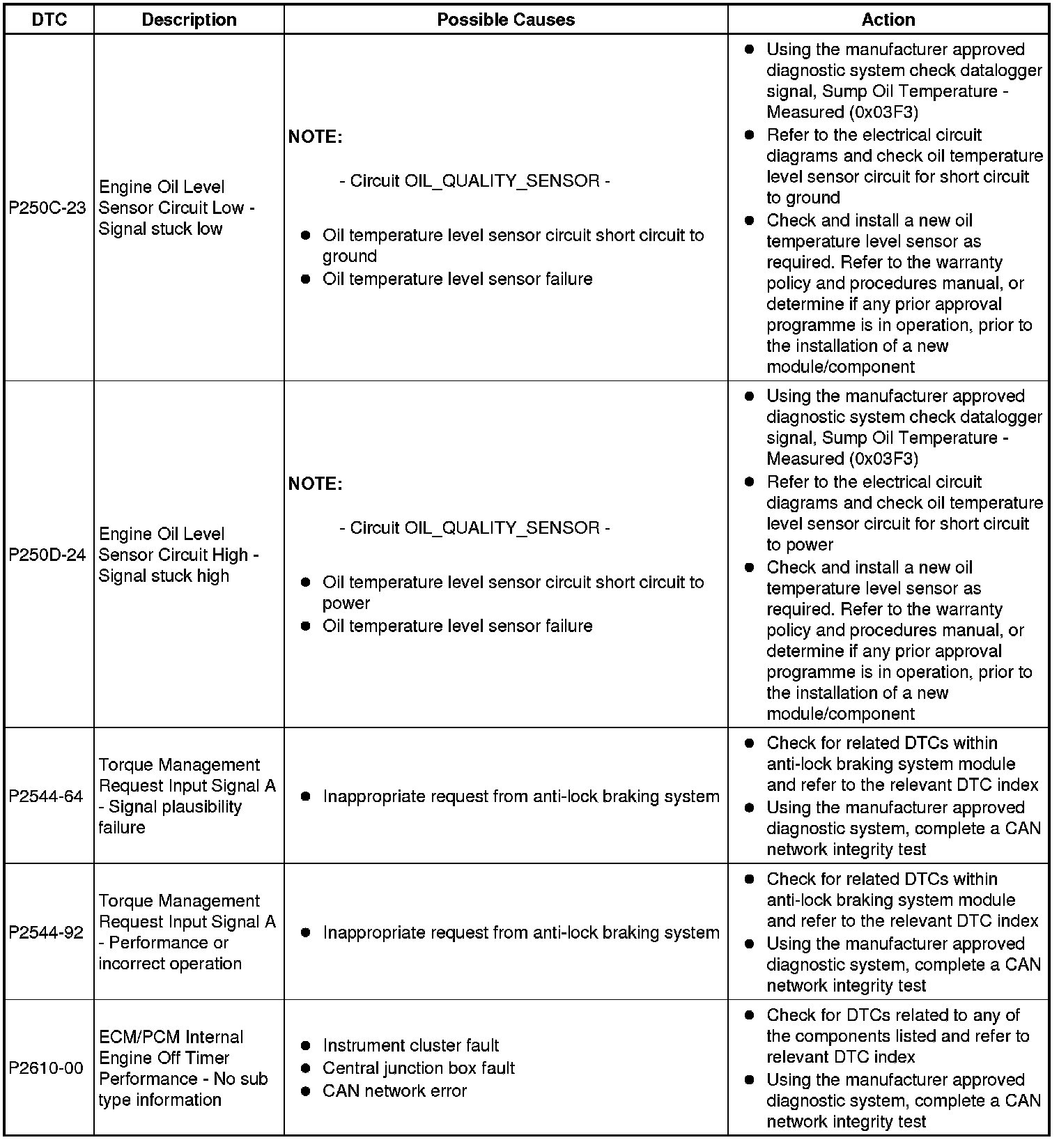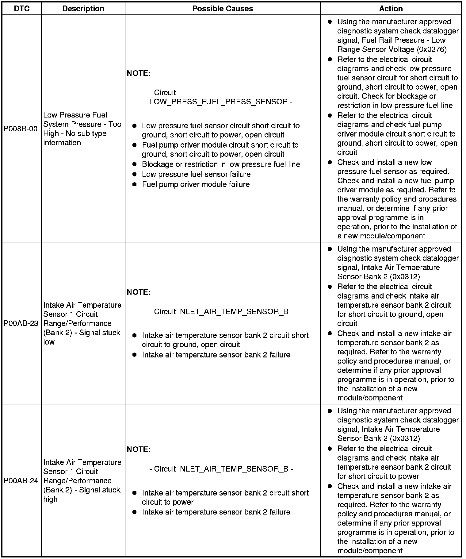 Diagnostic Trouble Code Descriptions