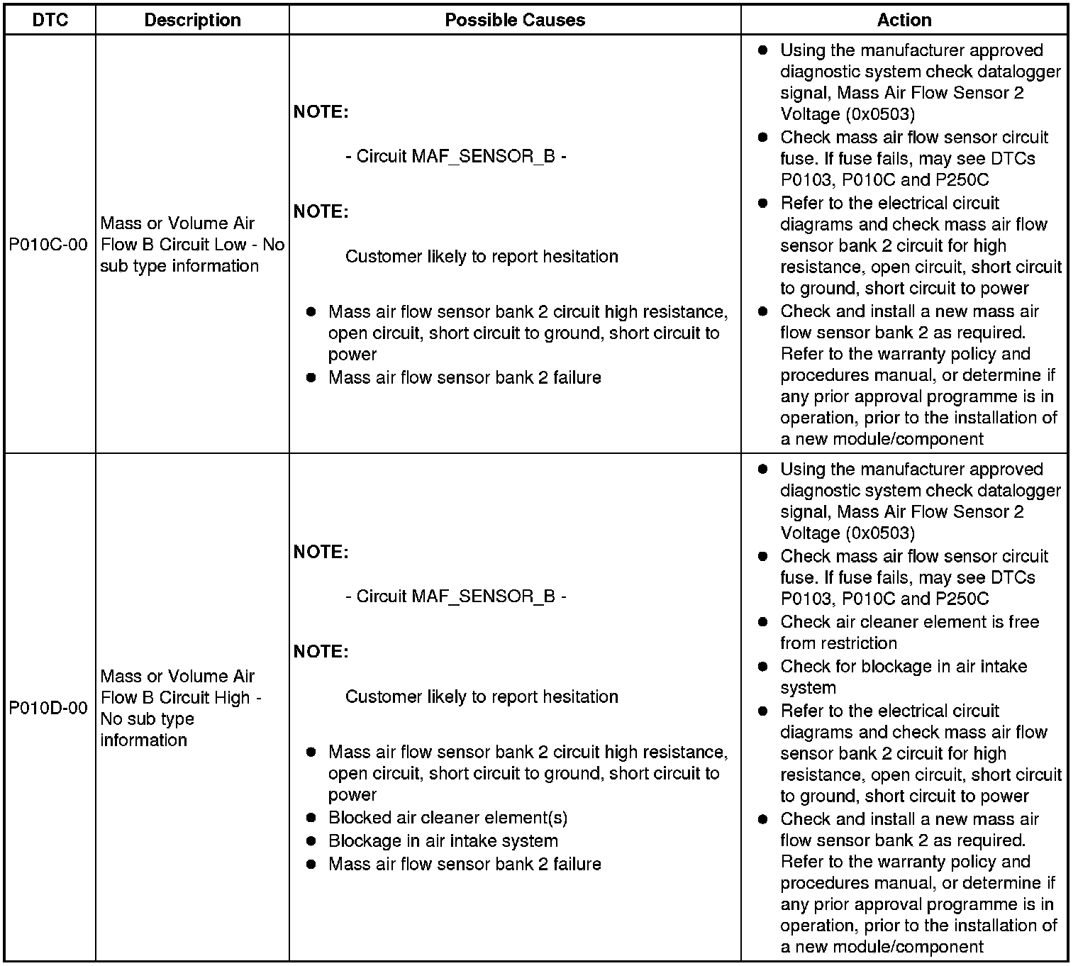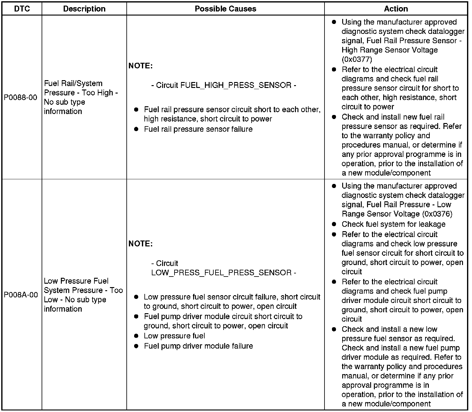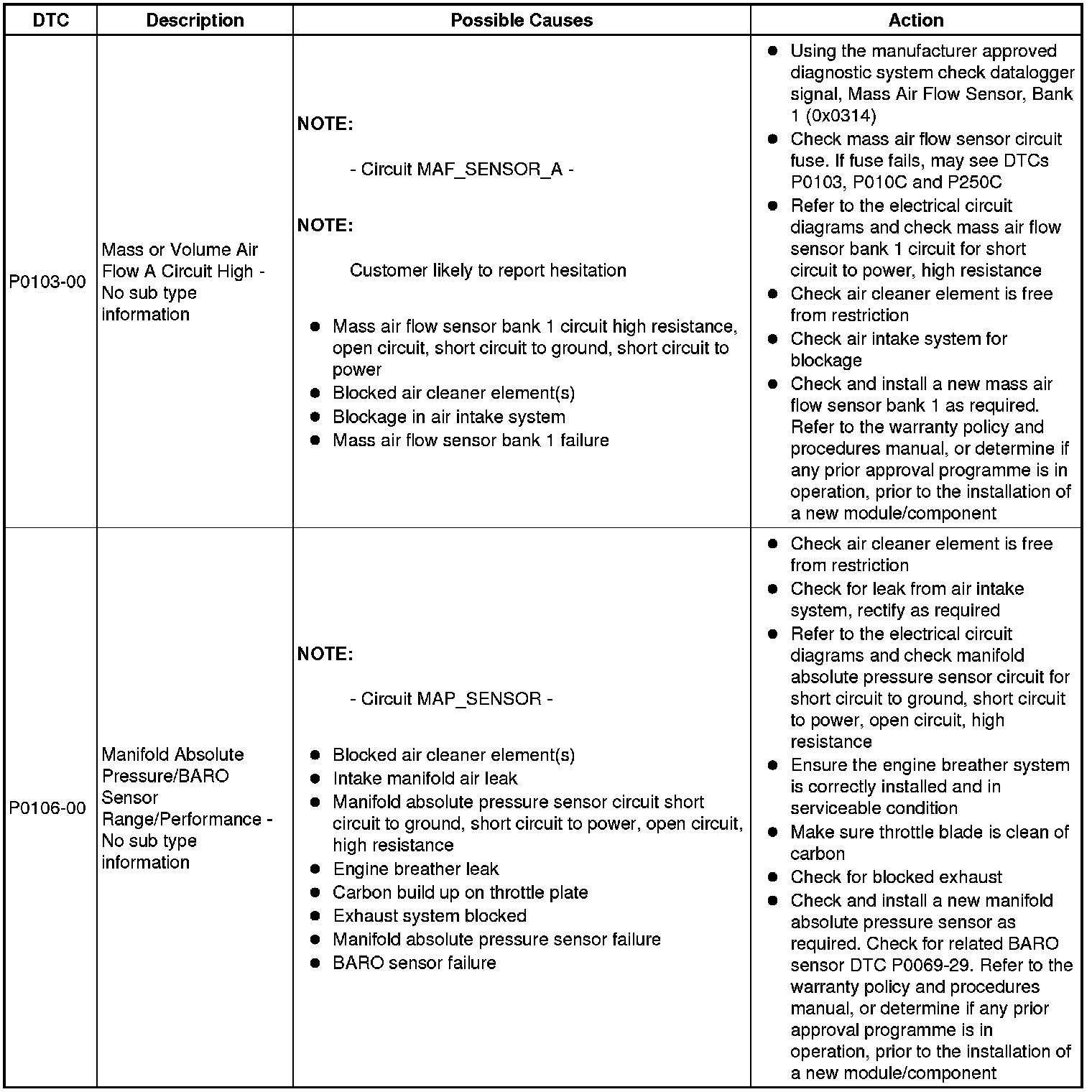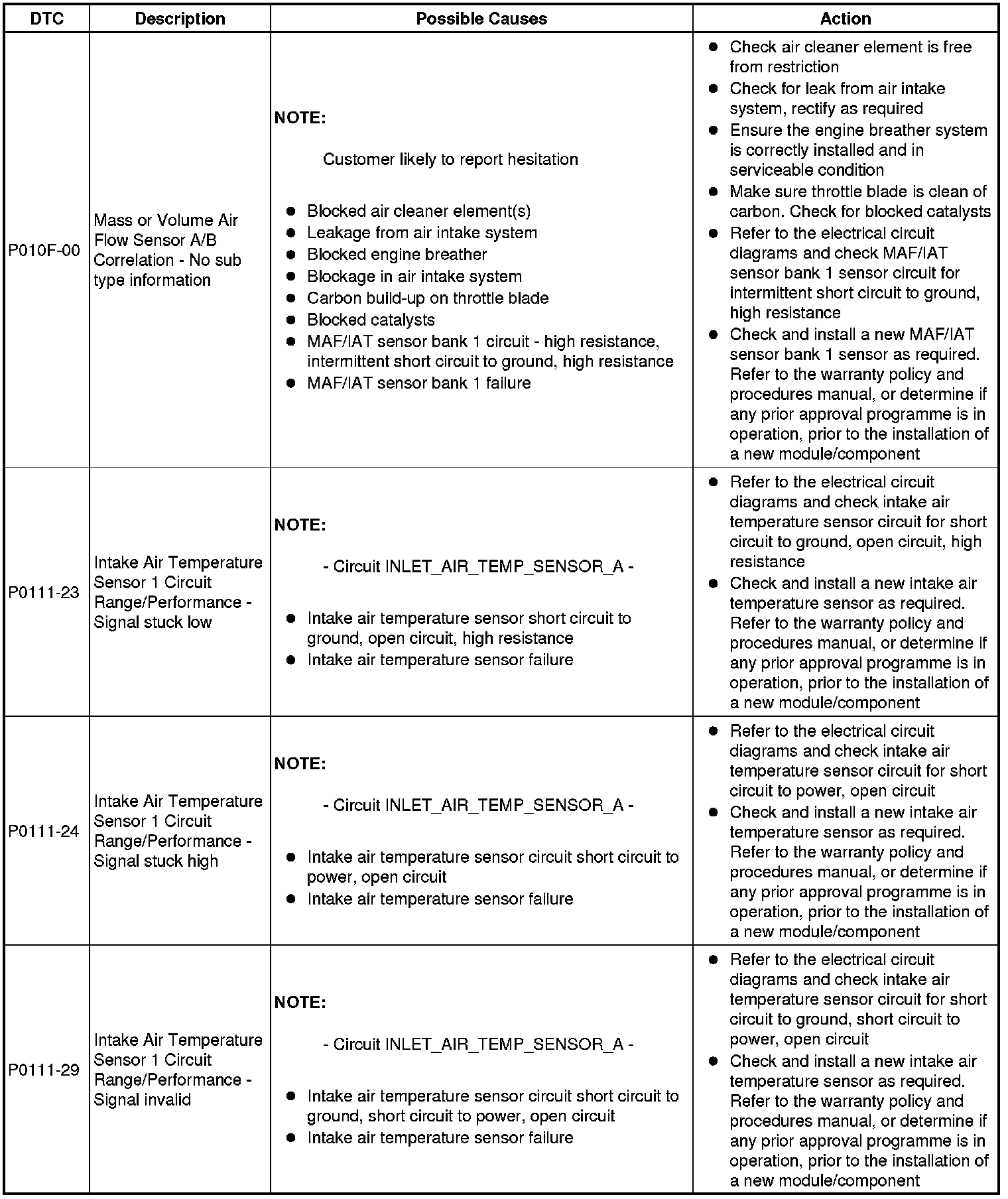 Diagnostic Trouble Code Descriptions