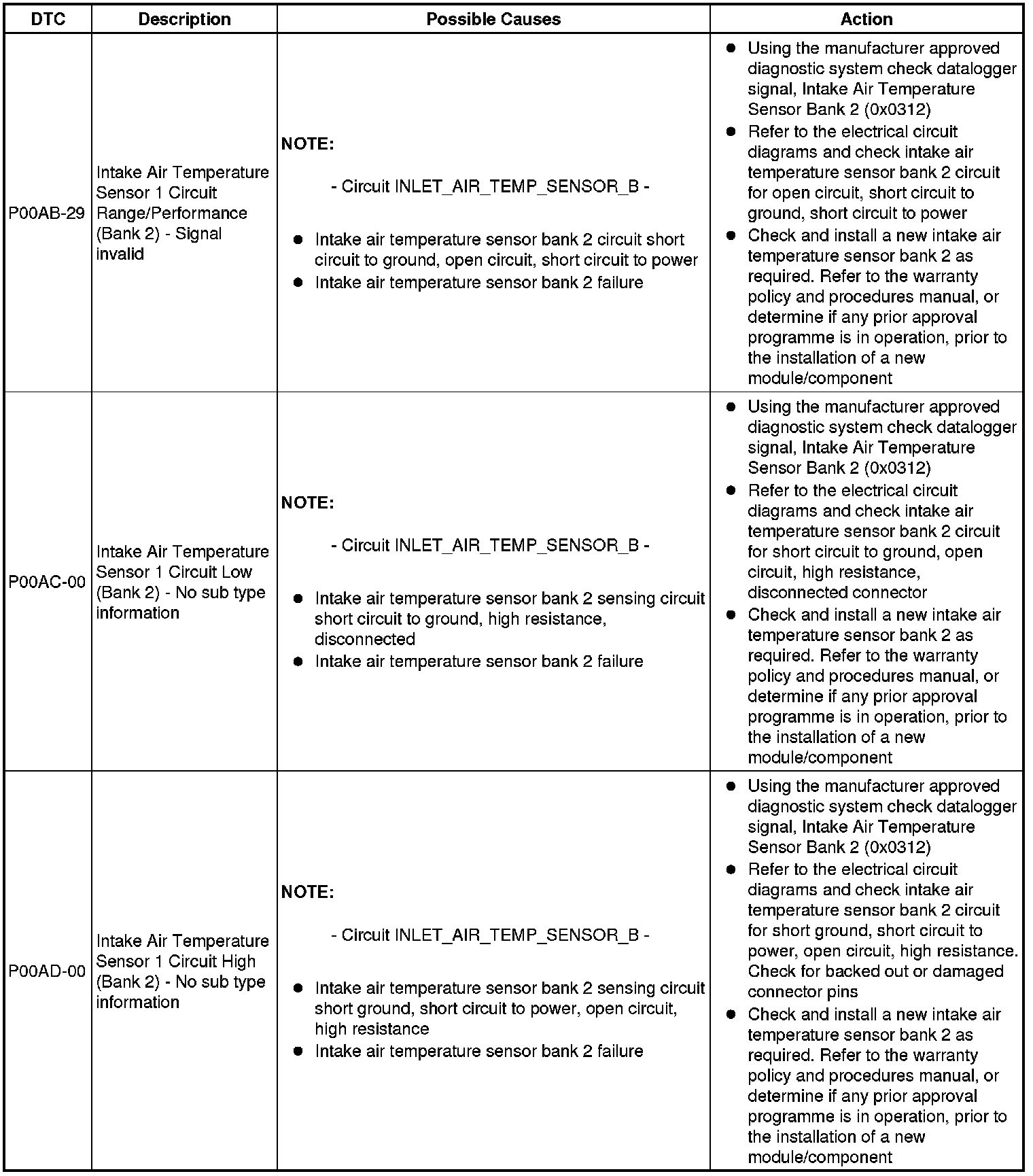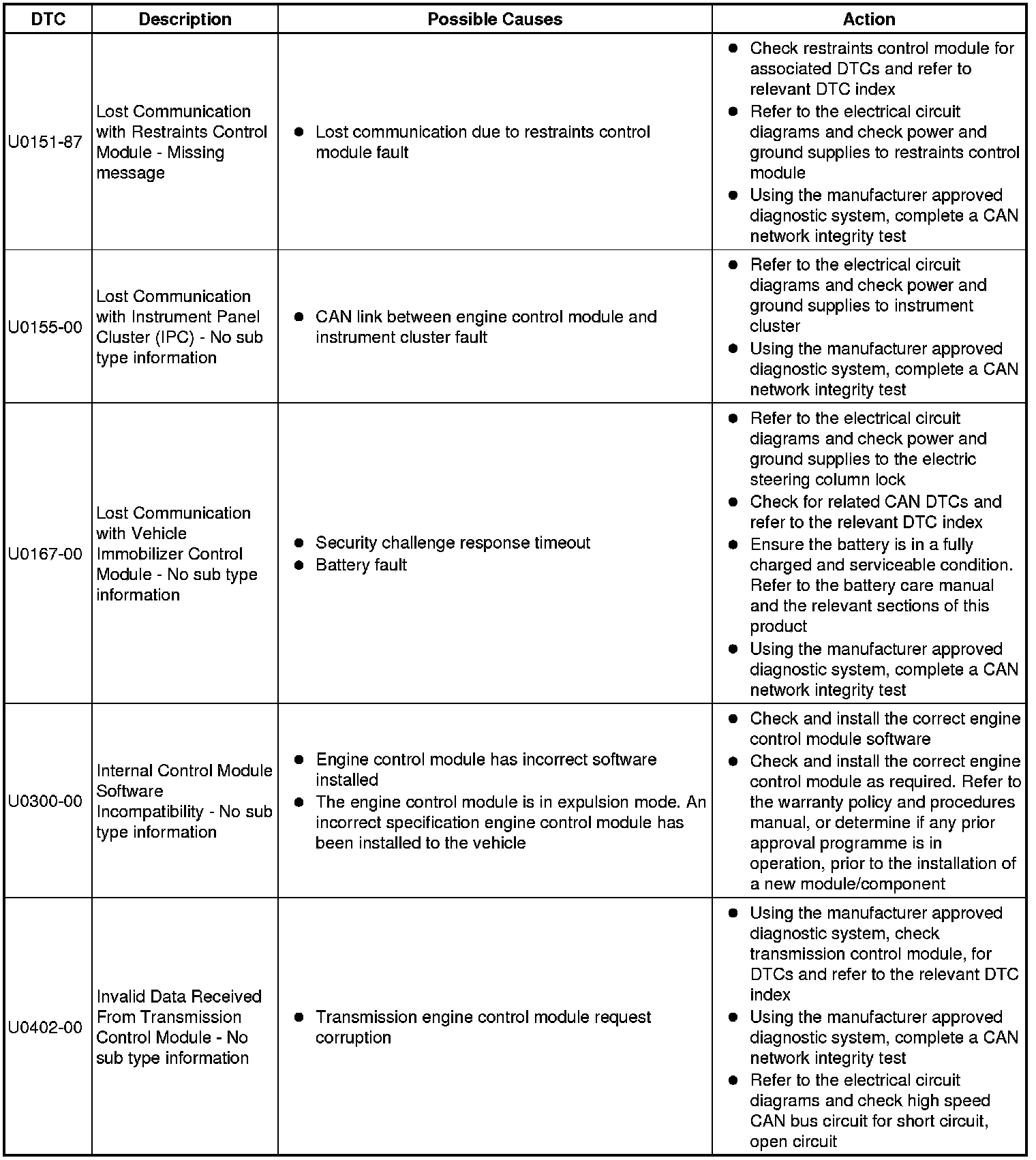 Diagnostic Trouble Code (DTC) Index