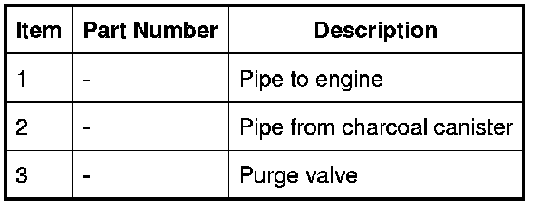 The purge valve is installed on a bracket attached to the LH (left-hand) cylinder head cover. The pipe to the engine from the purge valve is connected to the intake manifold (naturally aspirated vehicles), or SC (supercharger) front cover (SC (supercharger) vehicles), with a quick release connector. The pipe to the charcoal canister from the purge valve is installed between the LH (left-hand) cylinder head cover and ignition coil cover. From the rear of the LH (left-hand) cylinder head, the pipe then goes across the back of the engine, along the RH (right-hand) side of the transmission, along the fuel tank and rearwards of the tank to the charcoal canister.