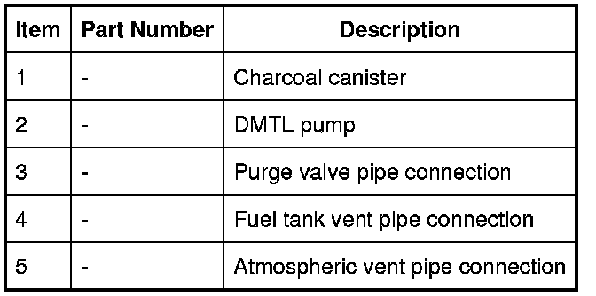 The DMTL pump is connected to the atmospheric vent of the charcoal canister and incorporates an electric air pump, a PTC (positive temperature coefficient) heating element, a normally open change-over valve and a reference orifice. The DMTL pump is only operated when the ignition is off and is controlled by the ECM (engine control module). The ECM (engine control module) also monitors the electric air pump operation and the change-over valve for faults.