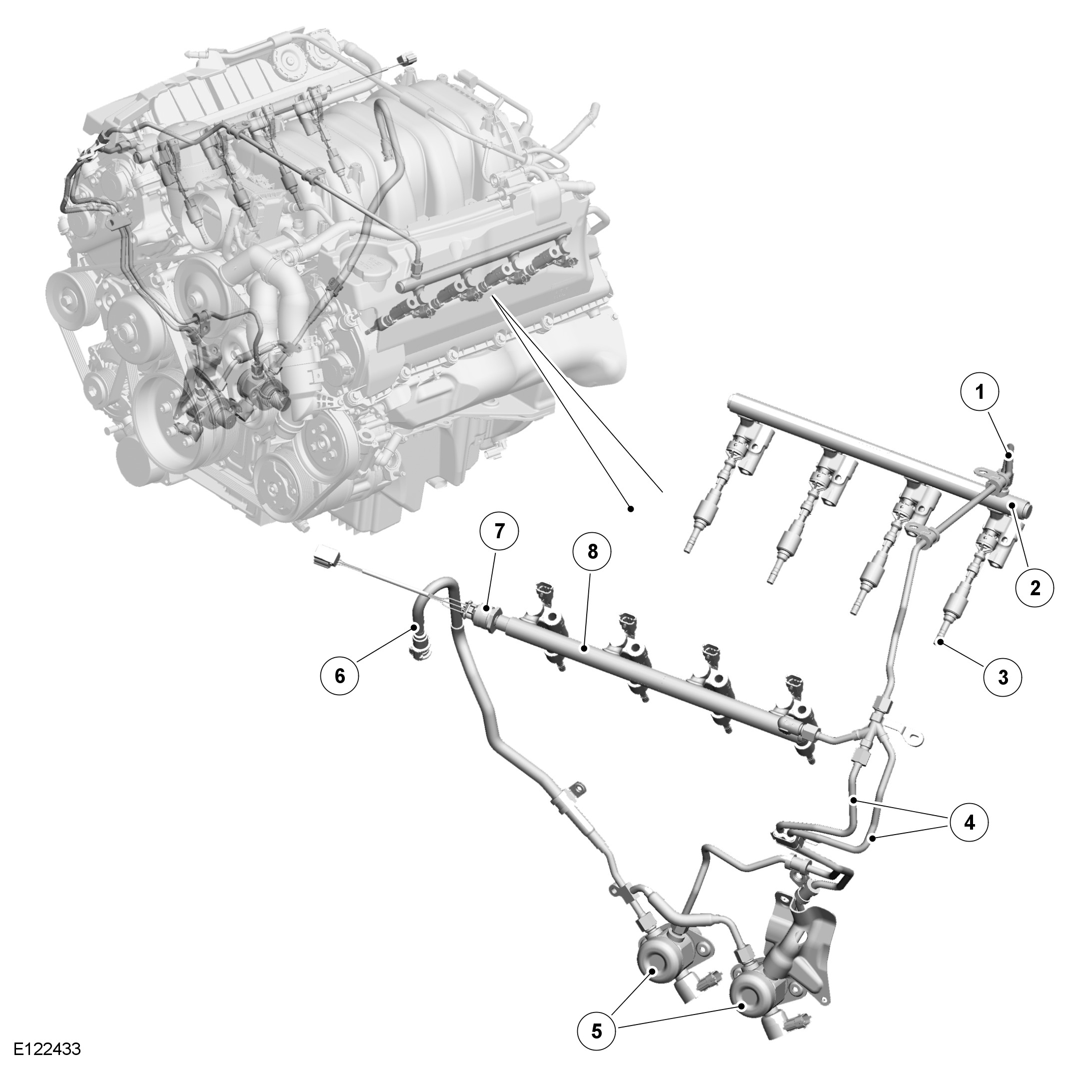 - Eight fuel injectors.