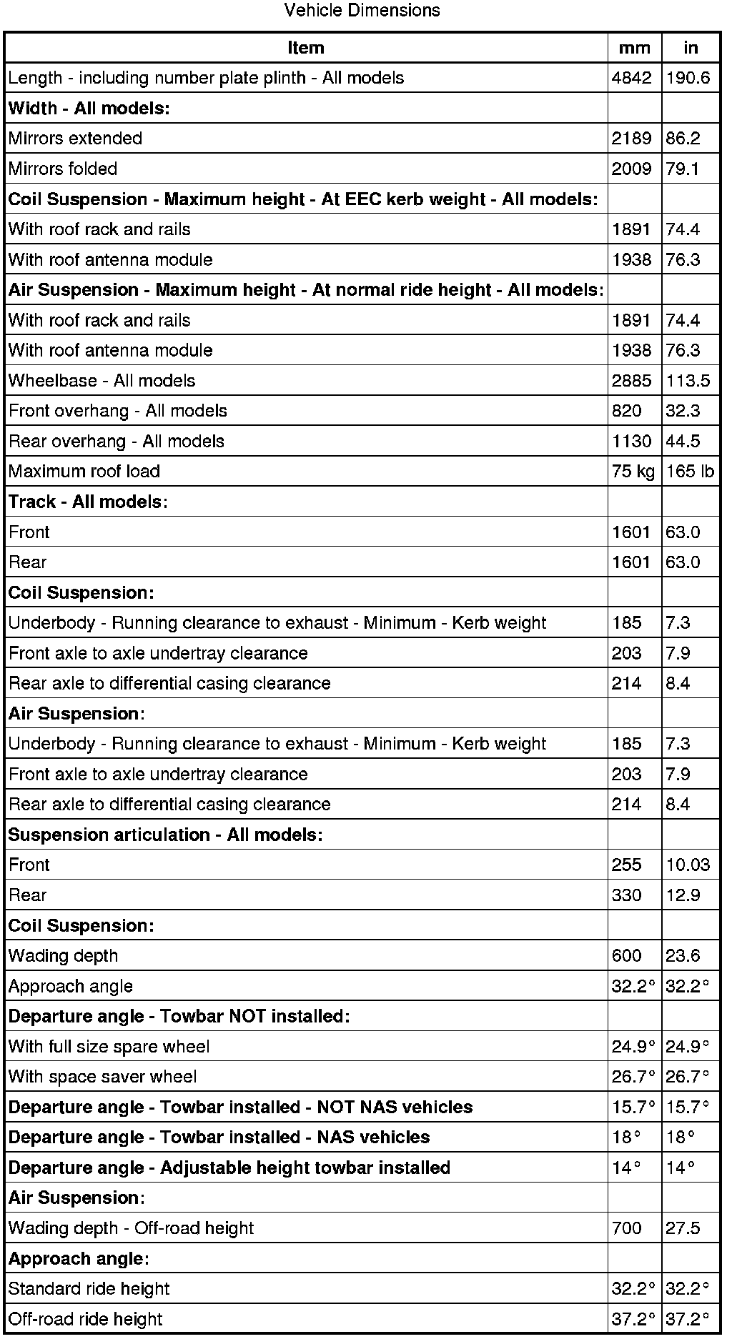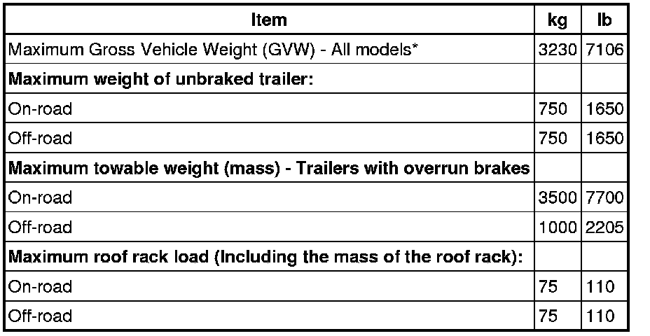 * Weight quoted is the maximum weight possible for vehicles in this model range; weights may be less for certain variants depending upon trim level, territorial requirements etc.
