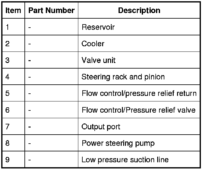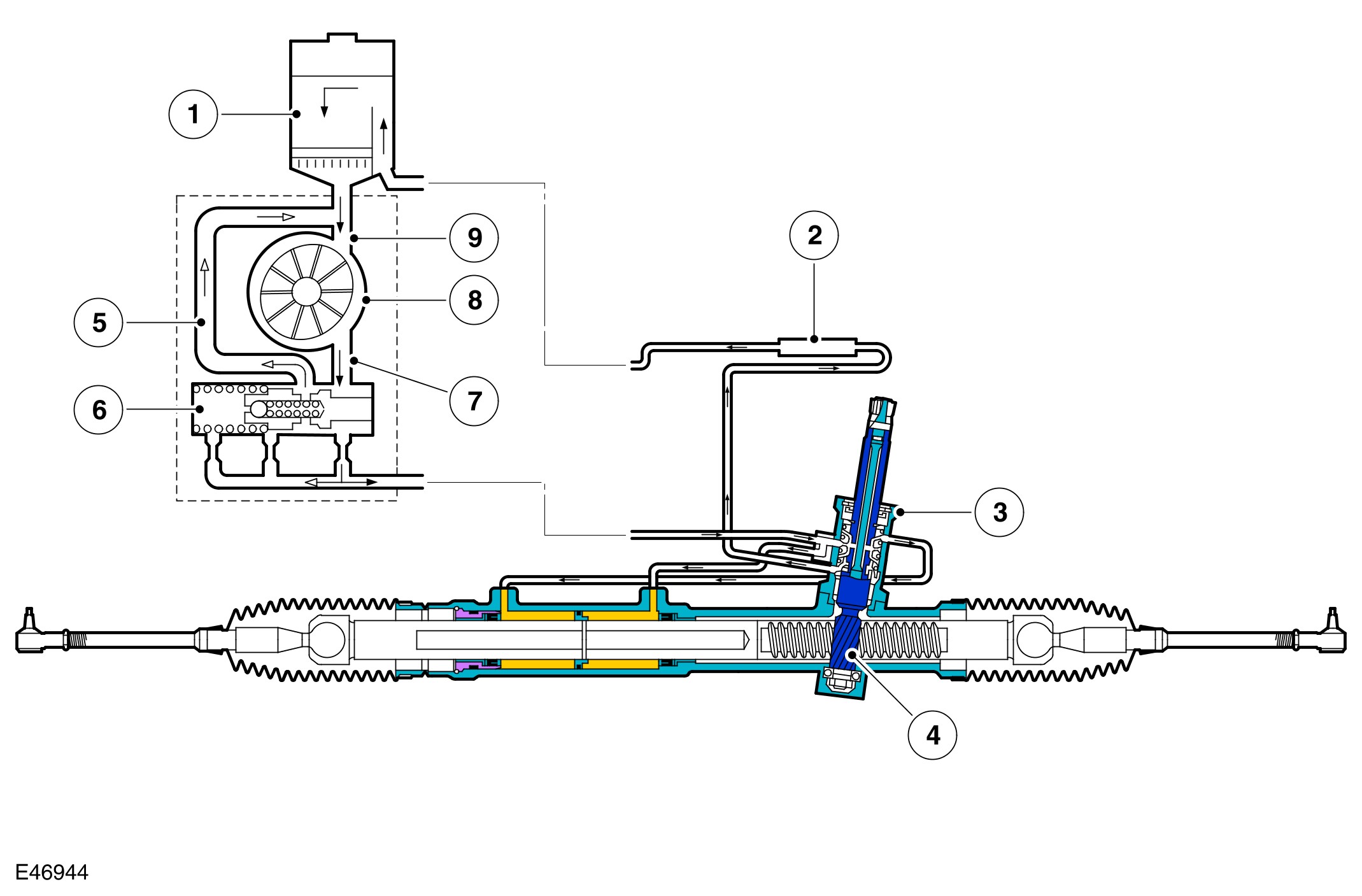 If no steering effort is applied, there is minimal restriction within the system and the supply pressure from the pump is low. Minimal pressure is applied, via the valve unit, to each side of the piston in the hydraulic cylinder and the full flow from the power steering pump returns to the reservoir via the fluid cooler.