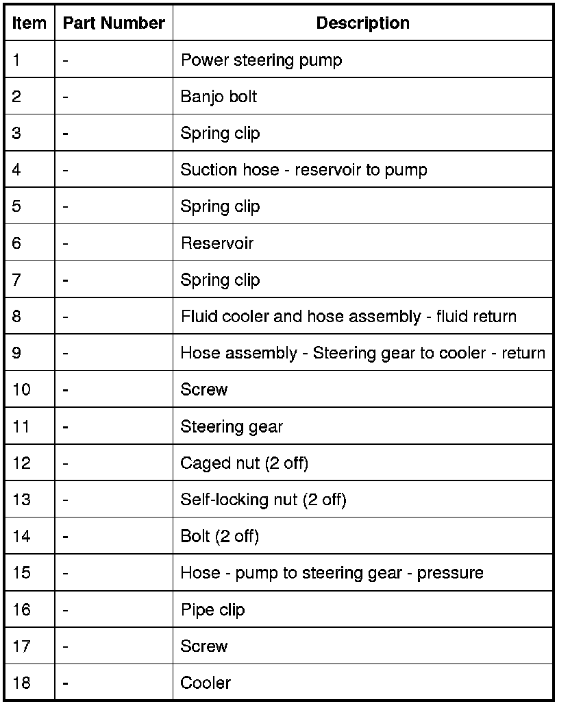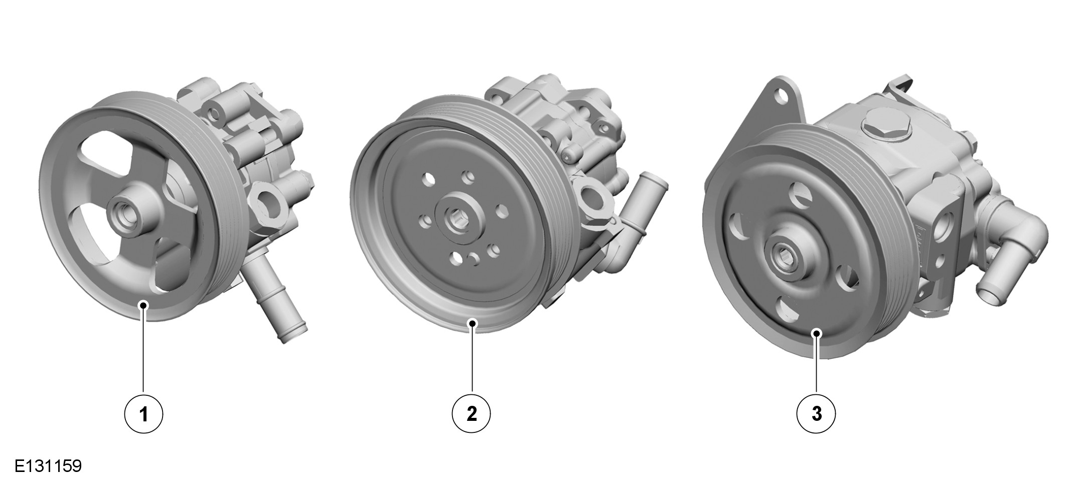 The power steering pumps used on the four engine variants are basically the same pump with different connection fittings. The pump is a positive displacement, vane type pump which supplies hydraulic pressure to the steering gear valve unit. The pump is driven by a Poly Vee belt from the crankshaft pulley and output from the pump increases proportionally with engine speed. A self-adjusting tensioner is fitted to maintain the correct tension on the belt.