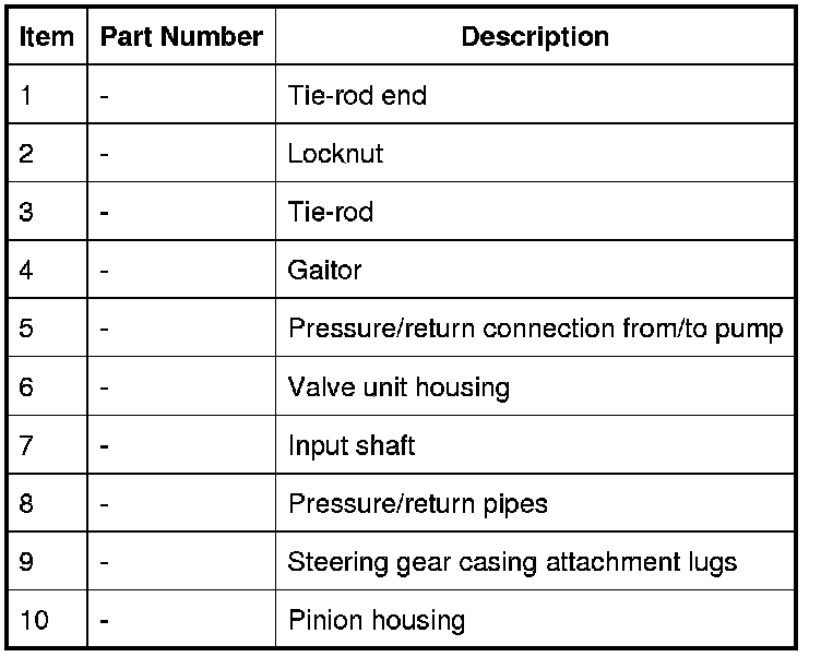 The gear has a central hole machined along its length. The hole allows the air in the gaiters to be balanced when the steering is turned. The gaiters are serviceable items and are retained on the gear housing and the tie-rod with zip ties.
