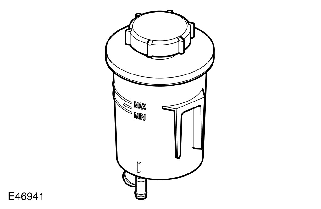 The fluid reservoir is located on a bracket in the left hand side of the engine compartment, behind the radiator. The reservoir comprises a body, cap and filter. The purpose of the reservoir is to contain a surplus of the hydraulic fluid in the system to allow for expansion and contraction of the fluid due to temperature variations. The fluid level ensures that the supply connection on the bottom of the reservoir is covered with fluid at all operating vehicle attitudes. Any air which is present in the system is exhausted from the system in the reservoir.