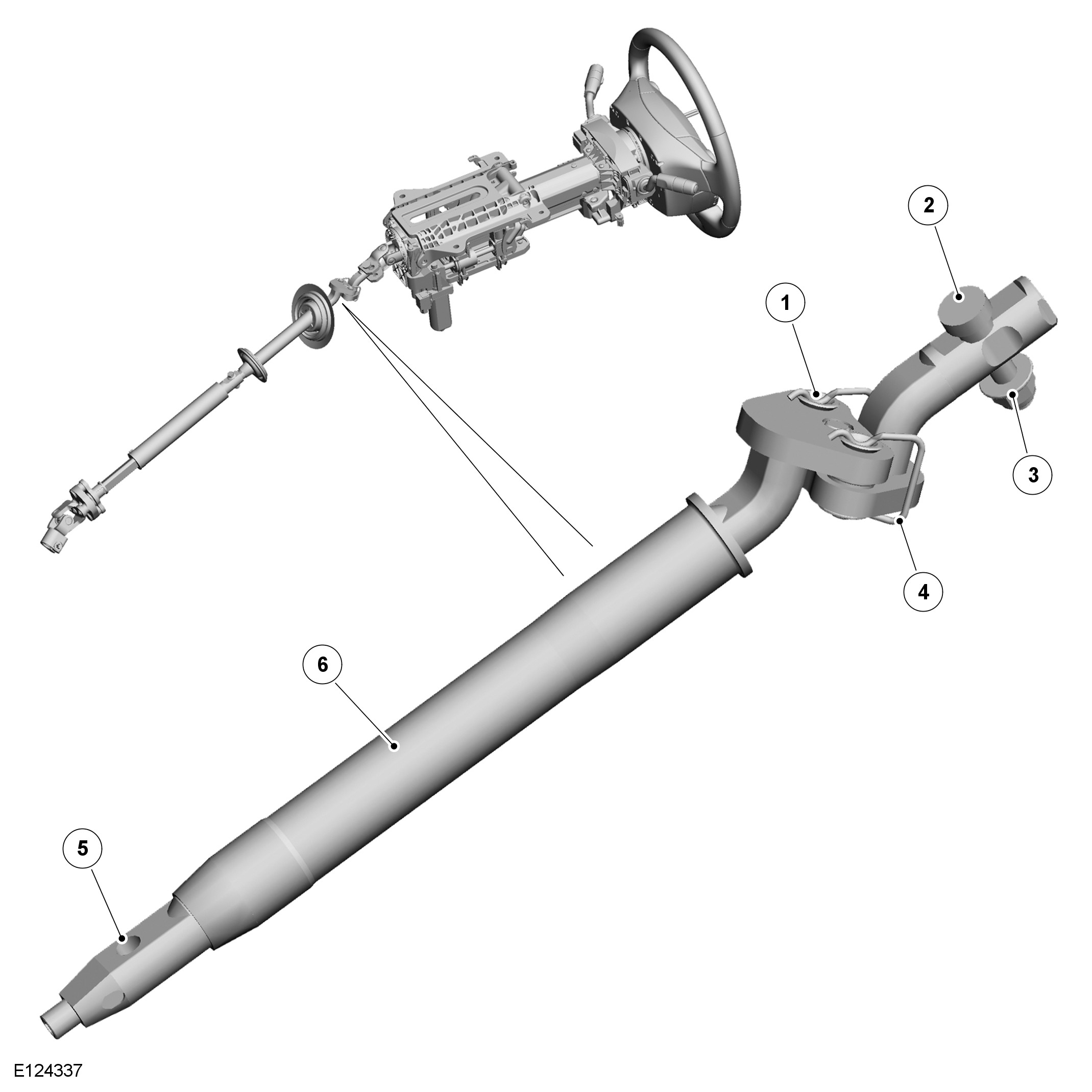 The upper steering column assembly houses the column lock mechanism and control module. The components are assembled with non-removable pins for security reasons and are therefore non-serviceable. Failure of any steering lock components will require replacement of the upper steering column assembly.