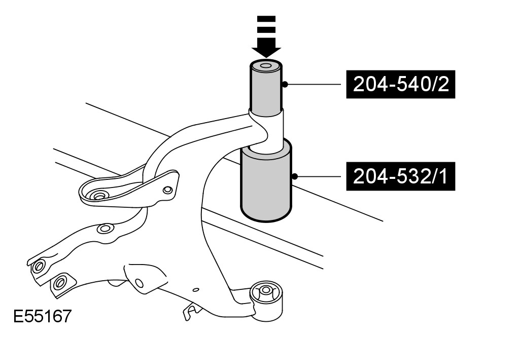 8 Using the special tools, remove and discard the lower arm rear bushings.