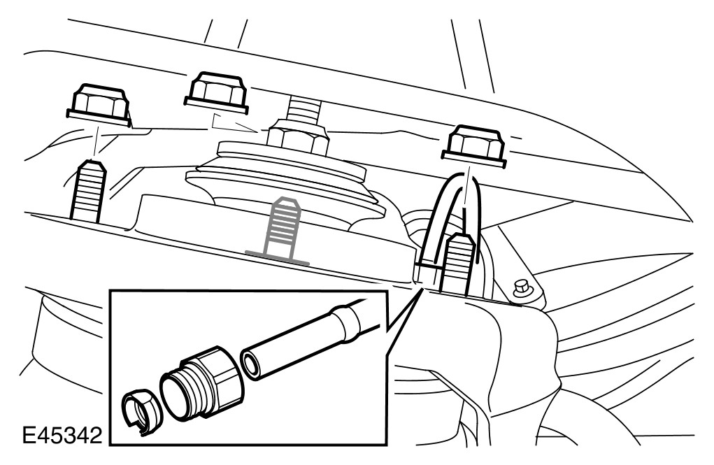 - Make sure the spring and shock absorber assembly top mounting to body mating faces are clean.
