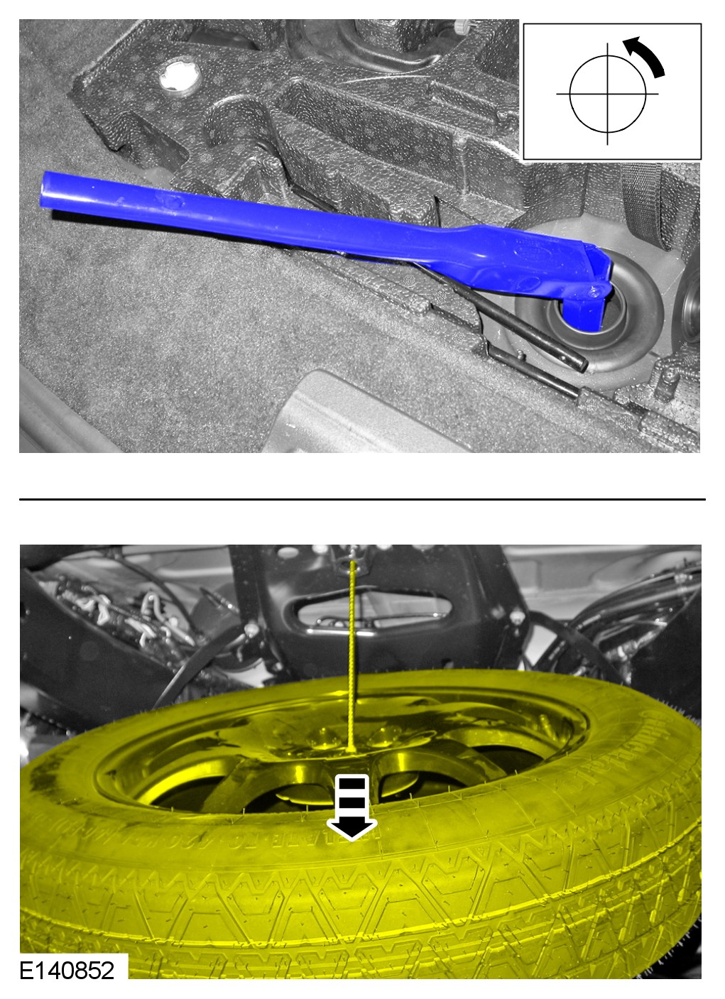 6 Connect the spare wheel release strap to the spare wheel and tire.