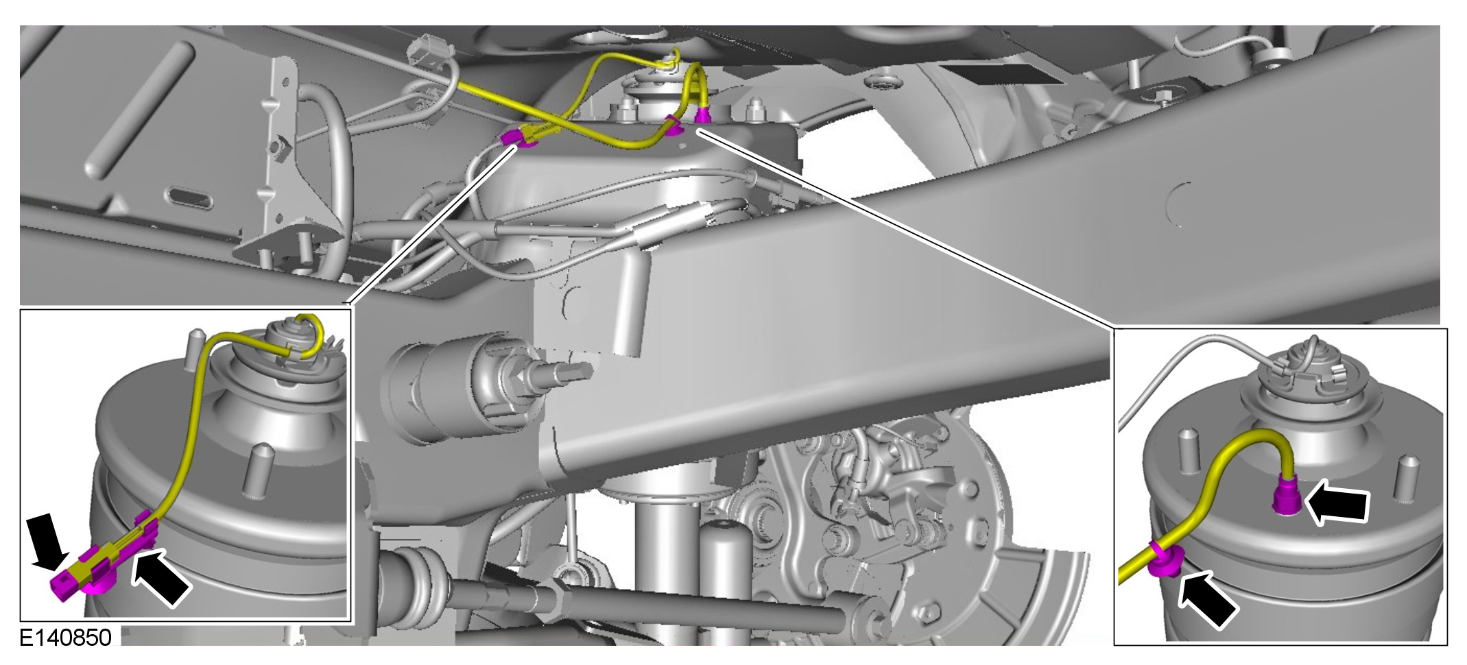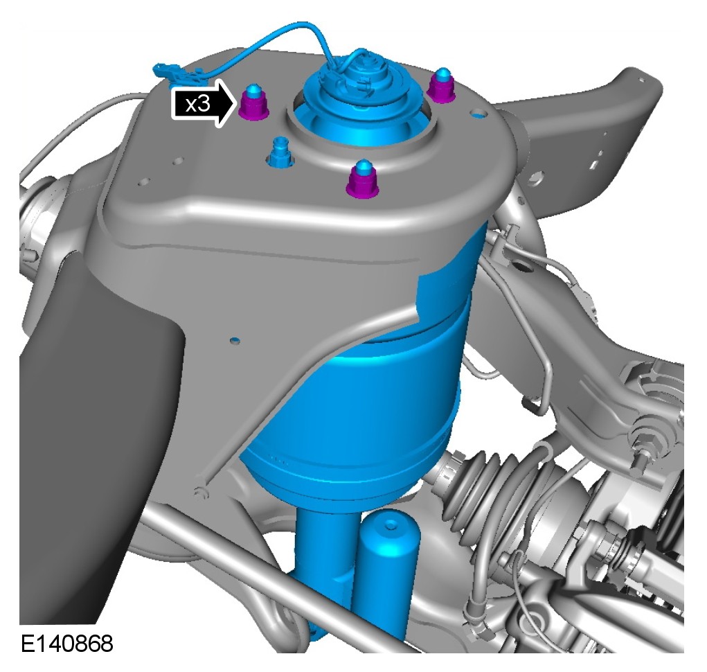 1 Using the Land Rover approved diagnostic system, depressurize the air suspension. For additional information, refer to Air Suspension System Depressurize and Pressurize Air Suspension System Depressurize and Pressurize