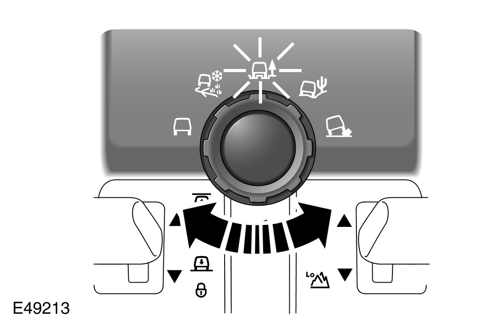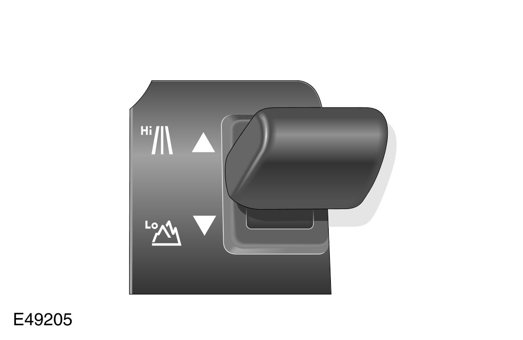 The selection of high/low range is achieved by using a switch located behind the main transmission selection lever in the centre console. A range change can only be performed when the transmission selector lever is in neutral (position 'N' for vehicles with automatic transmission). The accelerator pedal must not be depressed when a range change is in progress.