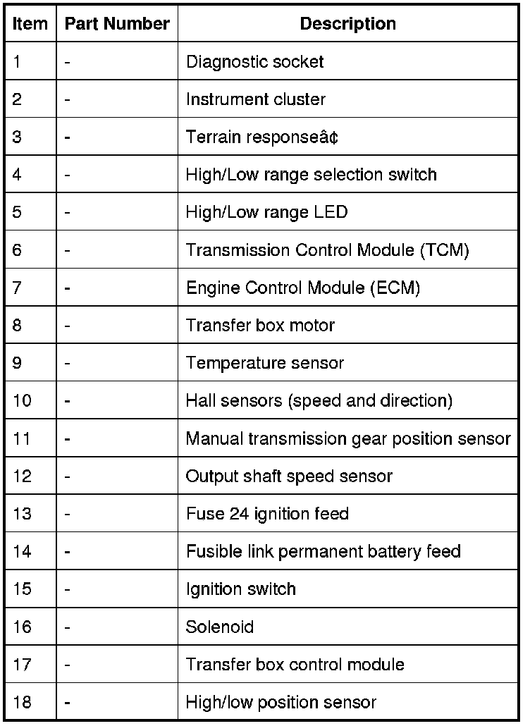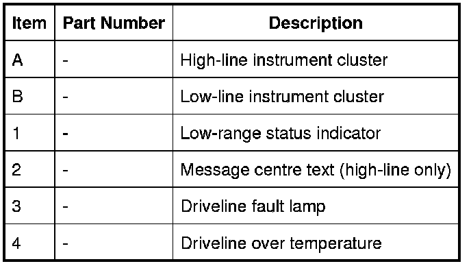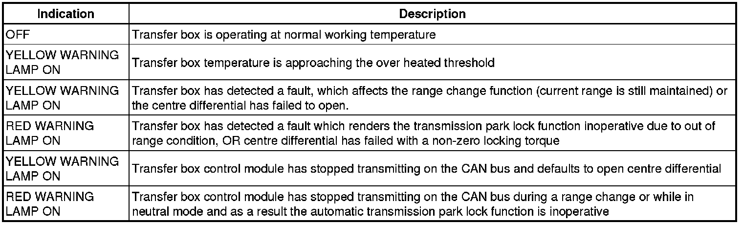 The following table shows the faults that could possibly illuminate the transfer box status lamp on vehicles fitted with the low-line instrument cluster: