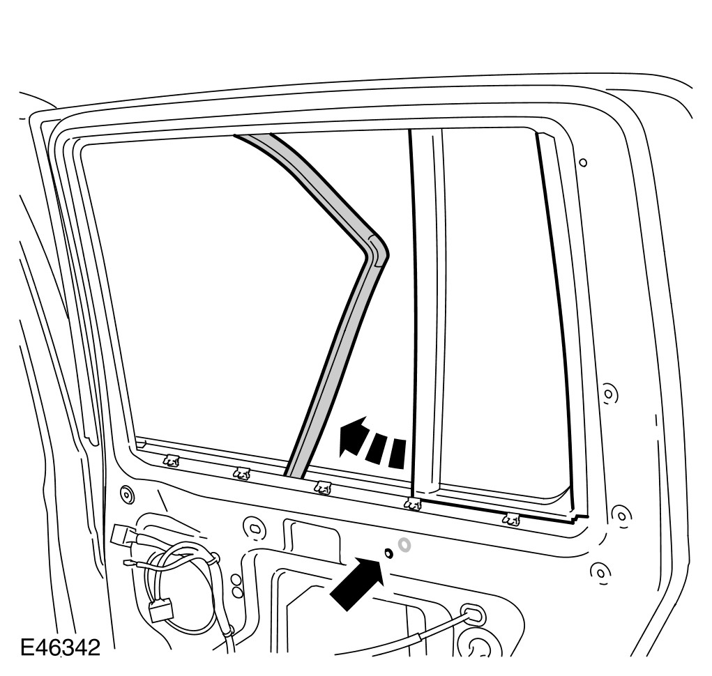 1 Remove the rear door window motor and regulator assembly. For additional information, refer to Rear Door Window Regulator and Motor Service and Repair