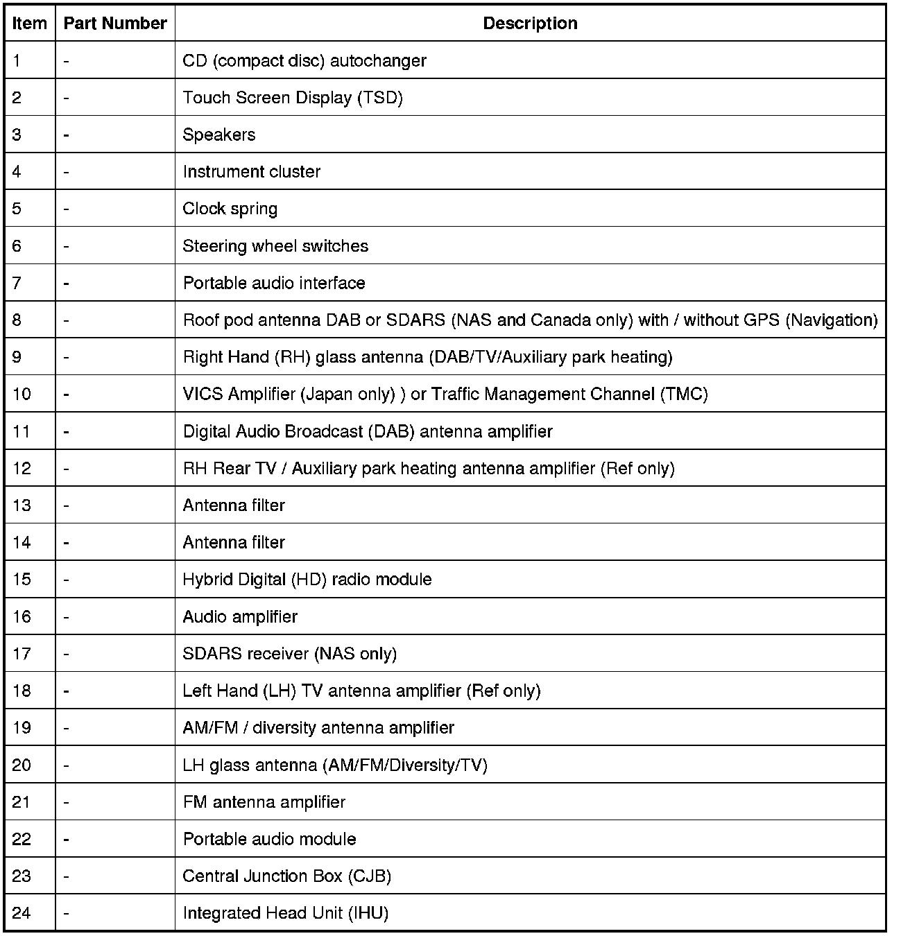 - DAB band III antenna located in the RH rear side window.