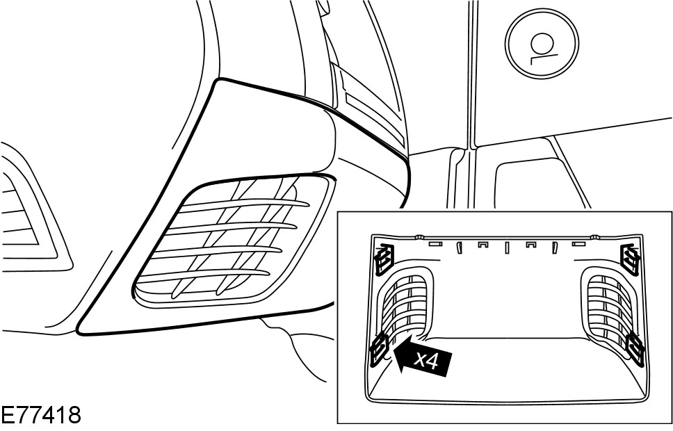13 Remove the auxiliary climate control rear register. For additional information, refer to Register Service and Repair