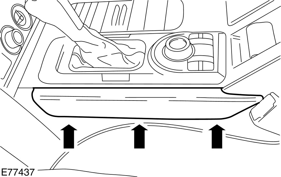 CAUTION: Make sure damage does not occur to the vehicle trim when removing the centre console side finisher trim panel.