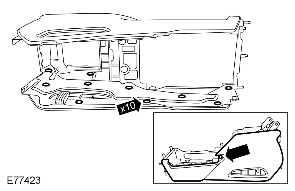 - Reposition the floor console upwards and rearwards.