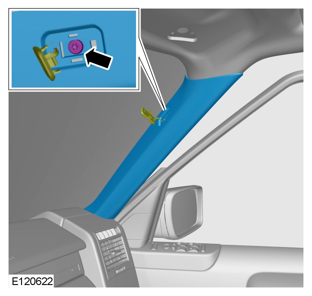 8 Remove the LH B-pillar trim panel. For additional information, refer to B-Pillar Trim Panel B-Pillar Trim Panel