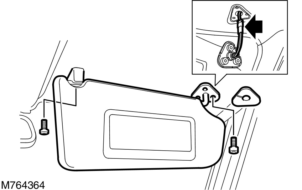 14 Install the LH sun visor. For additional information, refer to Sun Visor Service and Repair