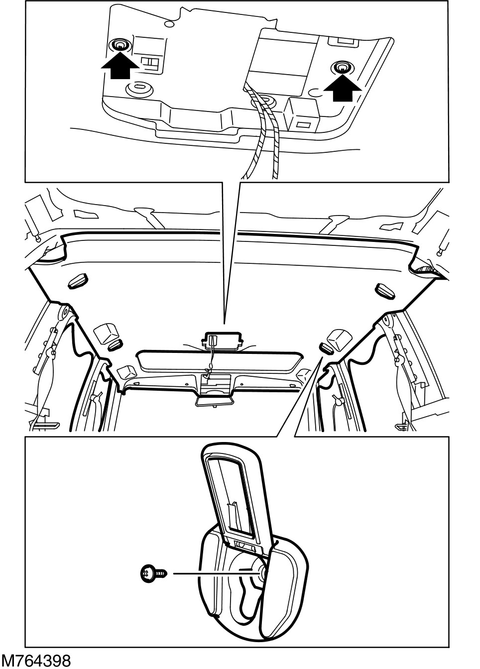Install the 2 screws to the headliner.