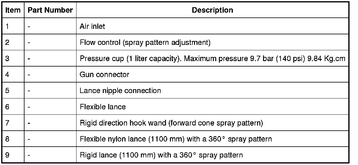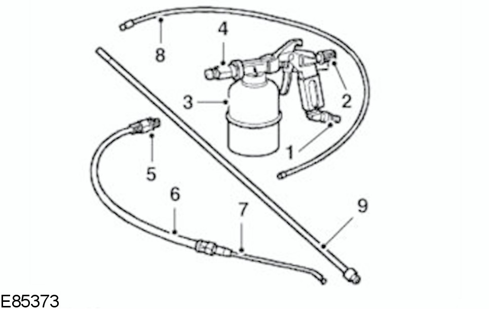 When re-treating wax injected areas which have been disturbed during repairs, it is necessary to use a compressed air spray gun with integral pressure cup and a selection of interchangeable lances.