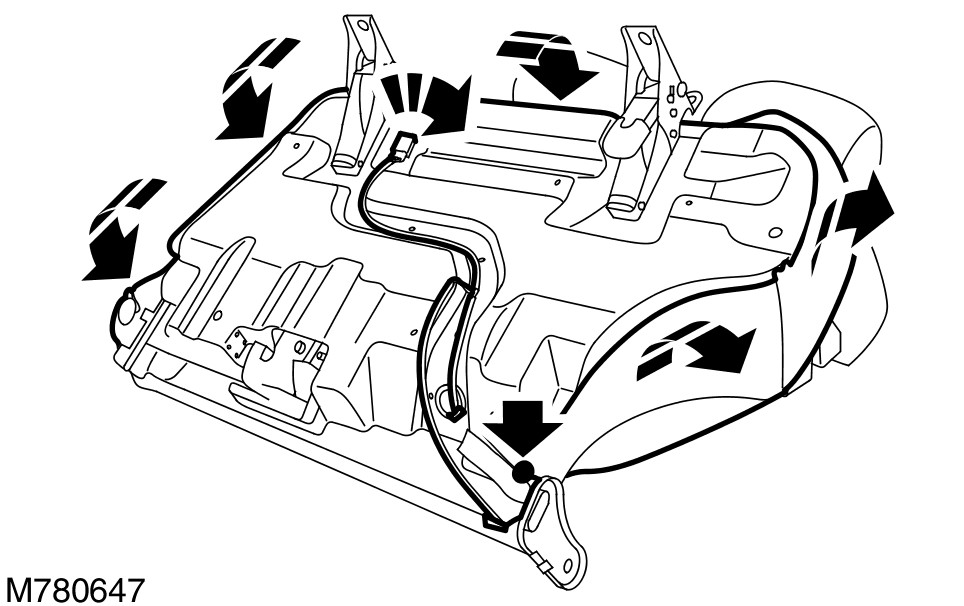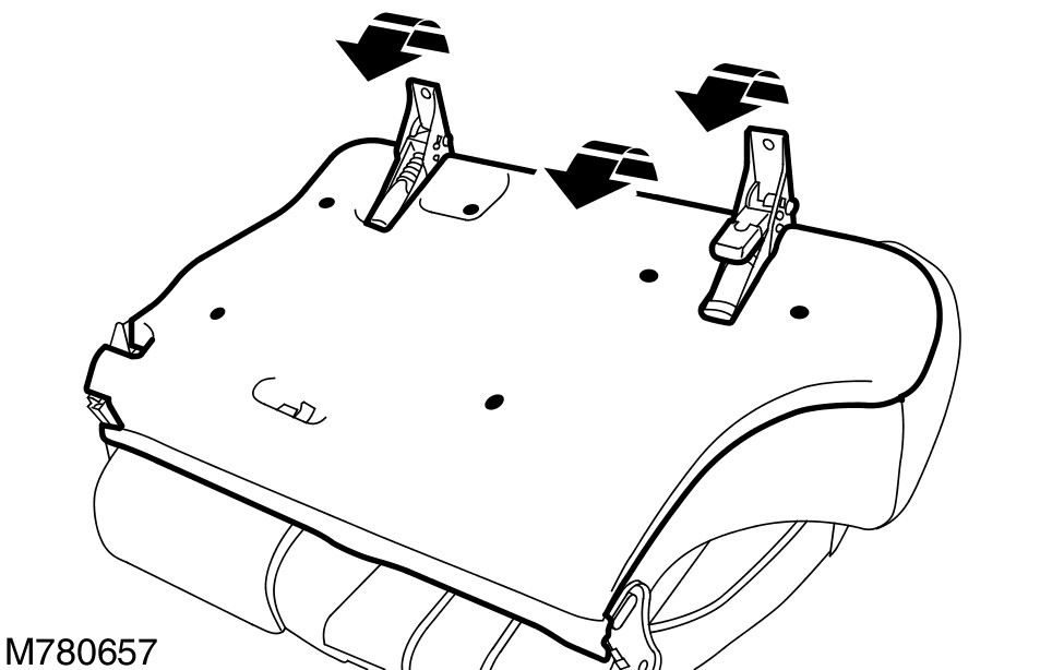 - Secure the 11 inner side trim panel clips to the rear seat backrest cover.