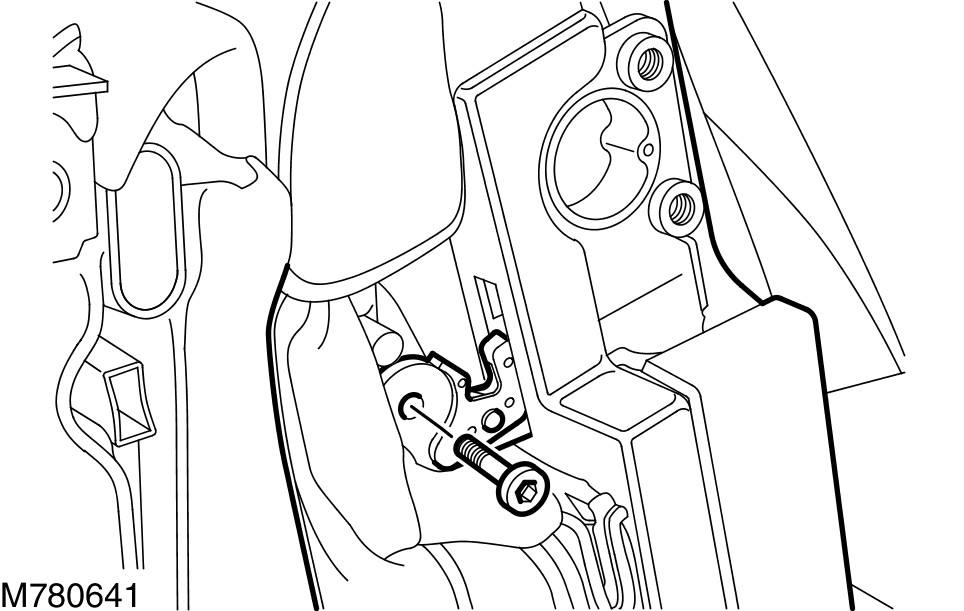 - Install the rear seat backrest outer hinge bolt and tighten to 45 Nm (33 lb.ft).