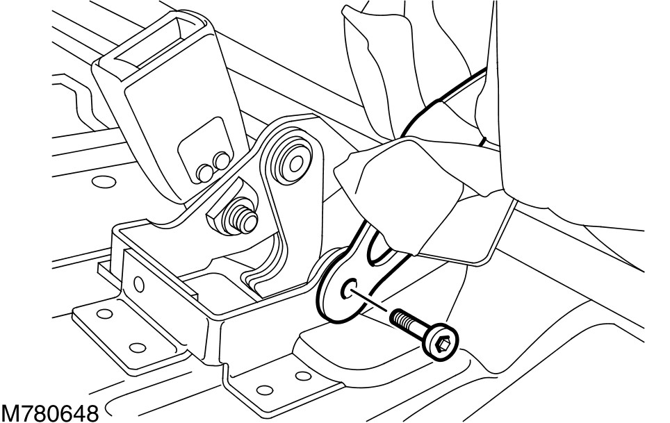 - Install the new safety belt bolt to the rear seat base and tighten to 31 Nm (23 lb.ft).