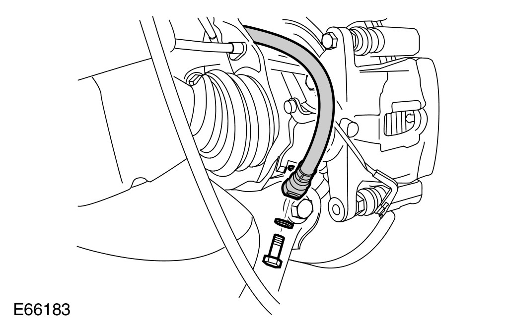 - Tighten the brake hose union to 32 Nm (24 lb.ft).