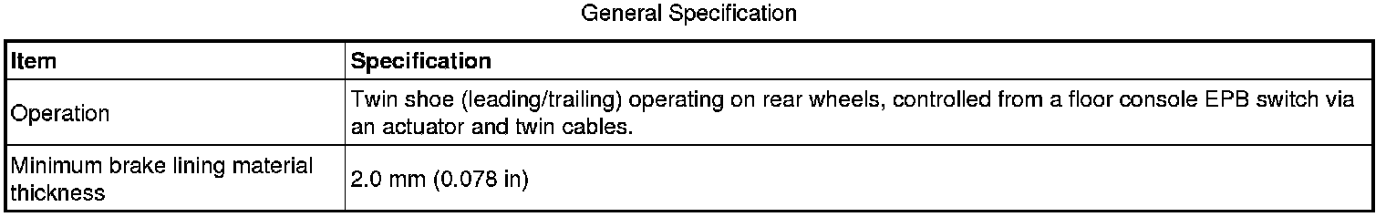 Parking Brake System: Specifications