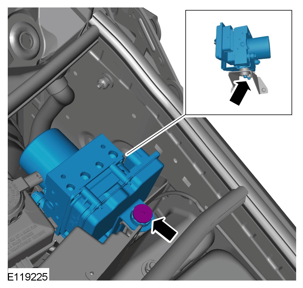 The hydraulic control unit (HCU) mounted to the ABS module cannot be serviced separately. If the HCU requires replacement, then the ABS module must be replaced as a complete assembly.